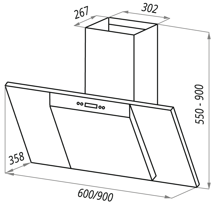 Максимальная производительность 1050 м3/час, 3 скорости, электронное управление, таймер, цифровой дисплей, периметрическое всасывание, жировой коллектор, алюминиевый фильтр, уровень шума 46,5Дб, освещение галоген 2х20В, полная потребляемая мощность 270Вт, диаметр воздуховода D=150мм, вытяжка/воздухоочиститель.