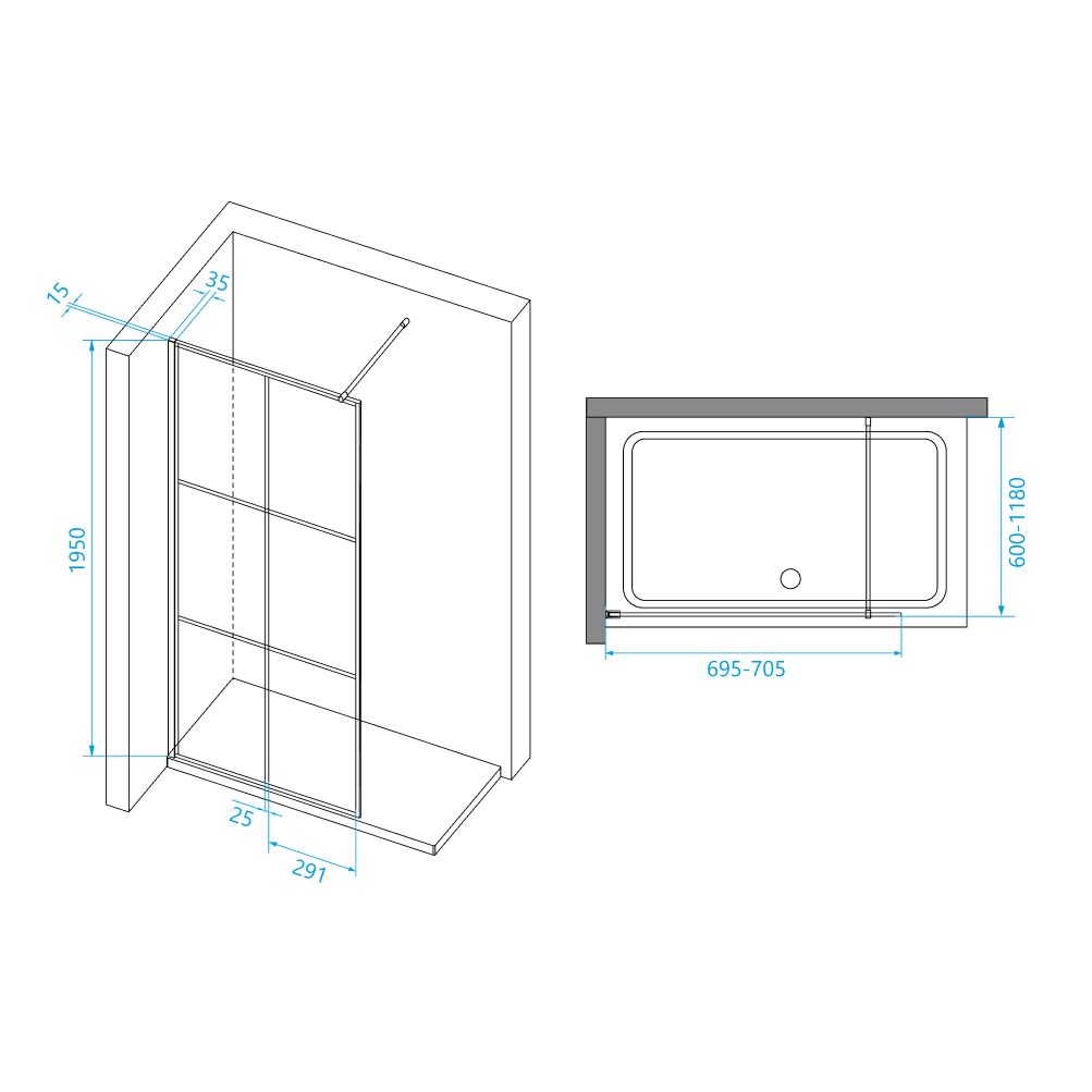 Представляем Вашему вниманию лаконичную перегородку для душа из серии Walk In. Данная модель представлена в 6 размерах. Модели с размером 700, 800, 900, 1000 с рисунком 6 квадратов. Модели с размером 1200, 1400 с рисунком 9 квадратов. Широкая размерная сетка подстраивается под различные параметры и формы ванной комнаты.