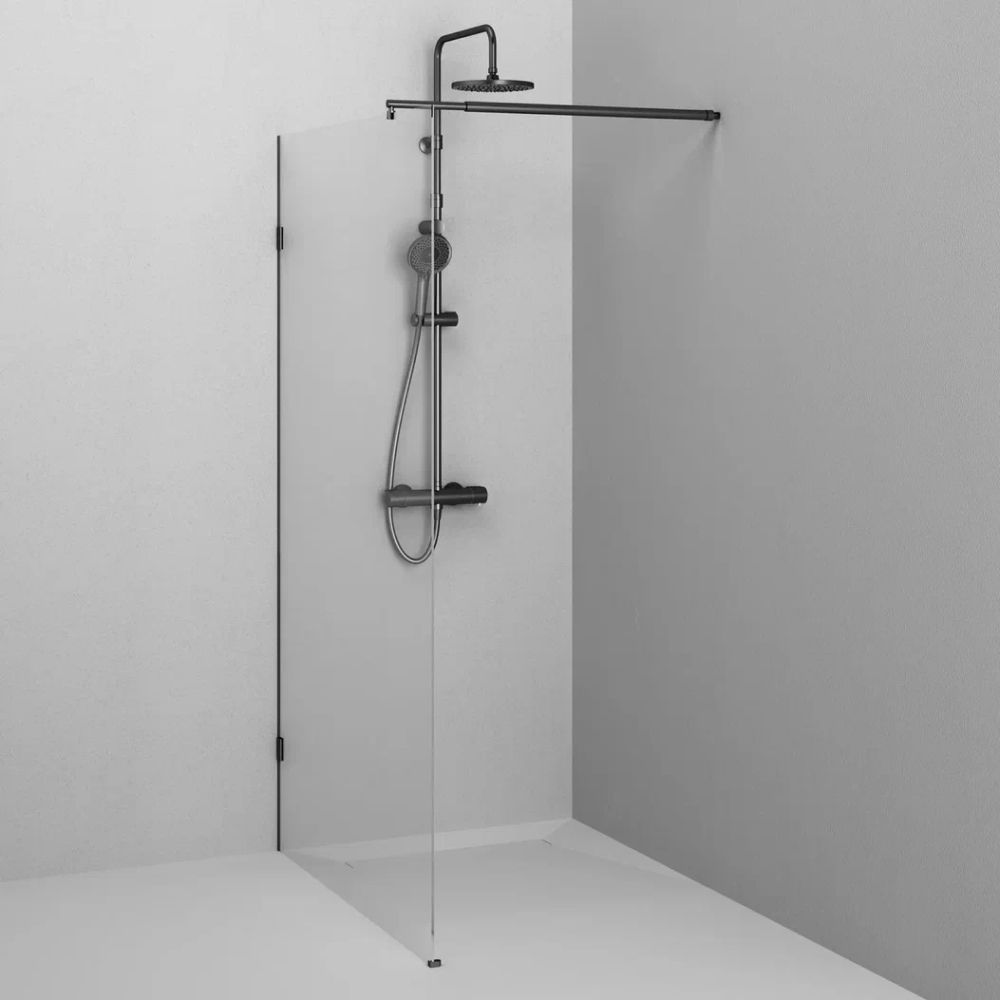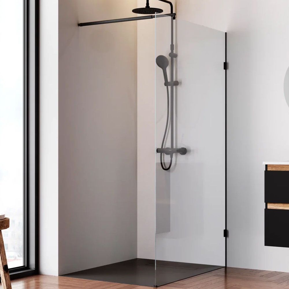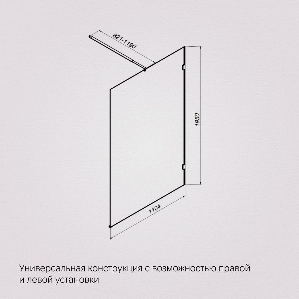 Высота 1950 мм регулируемый по длине кронштейн 80 - 120 см. Анодированный профиль и ударопрочное прозрачное стекло толщиной 6 мм гарантируют долгую службу. Защитное антиизвестковое покрытие EasyClean помогает легко поддерживать чистоту стекла. ""