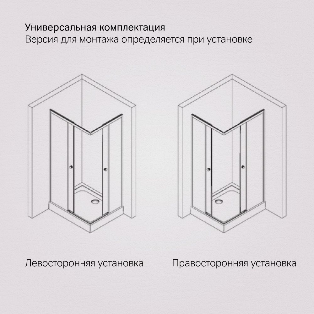 Прочная конструкция: верхние ролики увеличенного диаметра и нижние направляющие с надежной системой захвата стекла для плавного хода двери. Кнопочные фиксаторы на нижних направляющих позволяют легко отсоединить стекло для легкой уборки. Безопасное закаленное стекло: толщина дверей – 6 мм стенок – 4 мм.