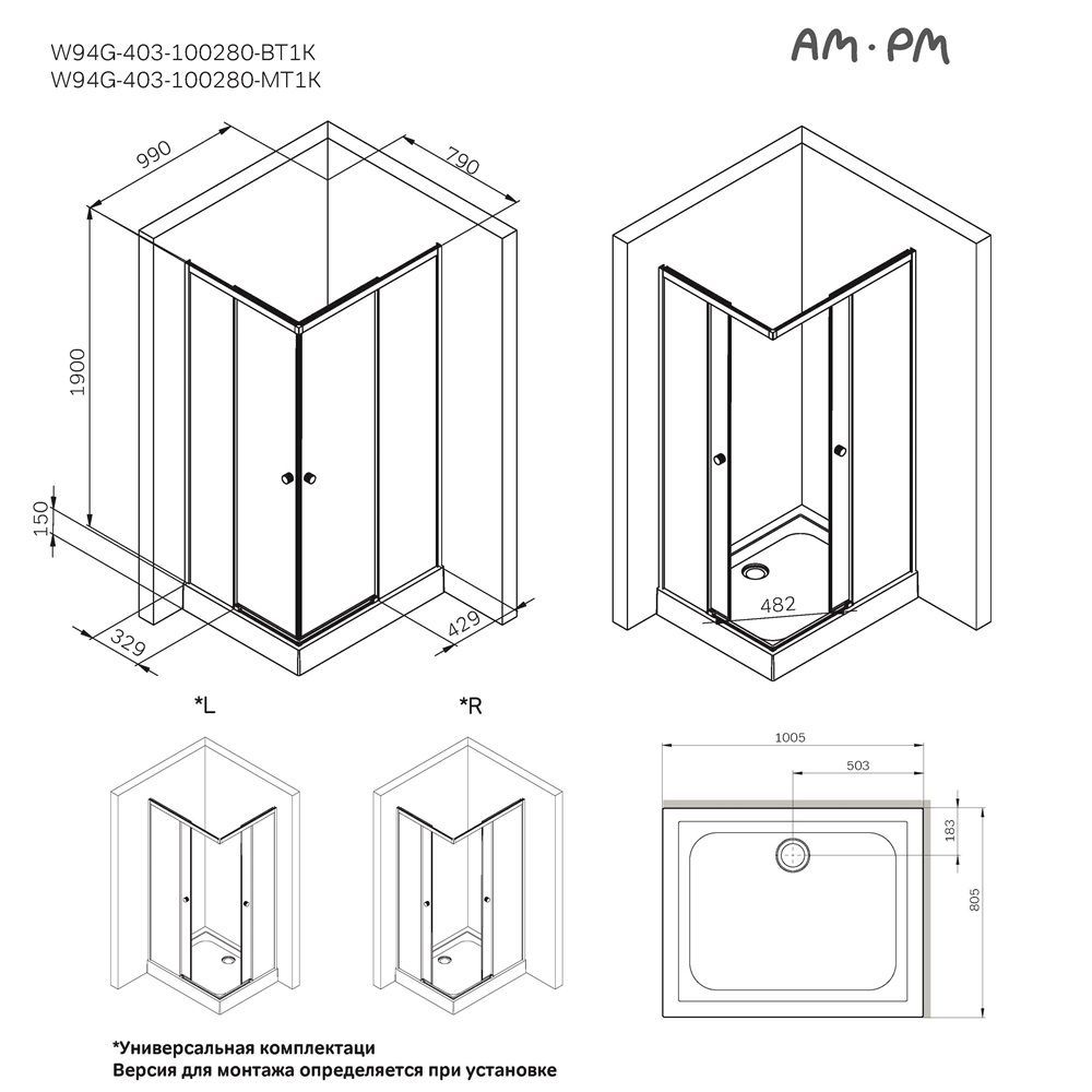 Прочная конструкция: верхние ролики увеличенного диаметра и нижние направляющие с надежной системой захвата стекла для плавного хода двери. Кнопочные фиксаторы на нижних направляющих позволяют легко отсоединить стекло для легкой уборки. Безопасное закаленное стекло: толщина дверей – 6 мм стенок – 4 мм.