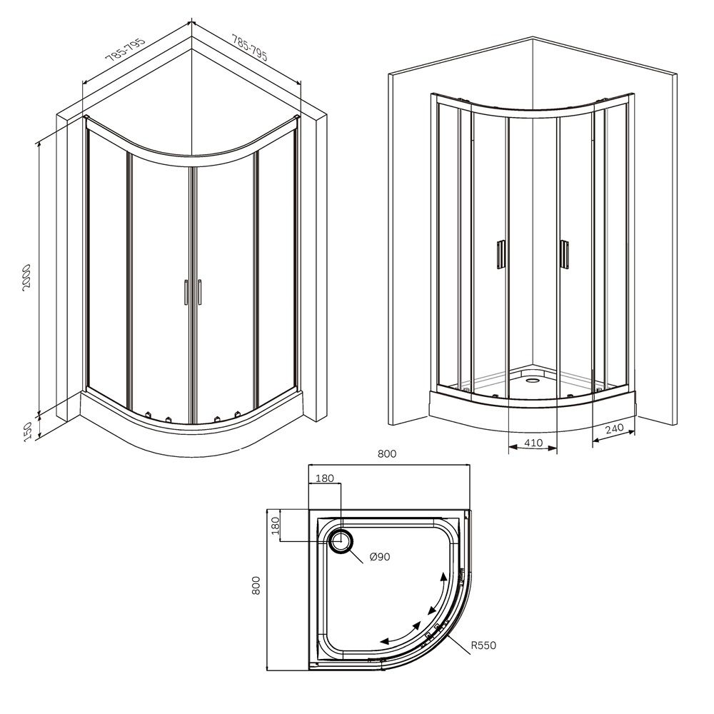 Совместимо с душевым поддоном - артикул W90T-401-080W.