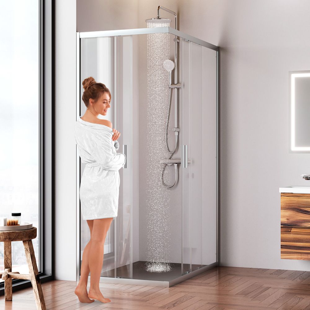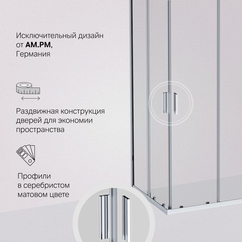 Душевое ограждение выполнено из ударопрочного закаленного стекла. Толщина фиксированного стекла 5 мм толщина стекла двери 6 мм. Профили ограждения изготовлены из надежного алюминия с премиальным анодированным покрытием. Анодирование обеспечивает равномерный насыщенный цвет и особенную стойкость к механическим повреждениям. ""