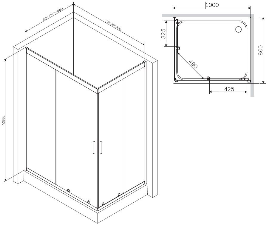 Совместимо с душевым поддоном - артикул W90T-404-100280W приобретается отдельно. ""