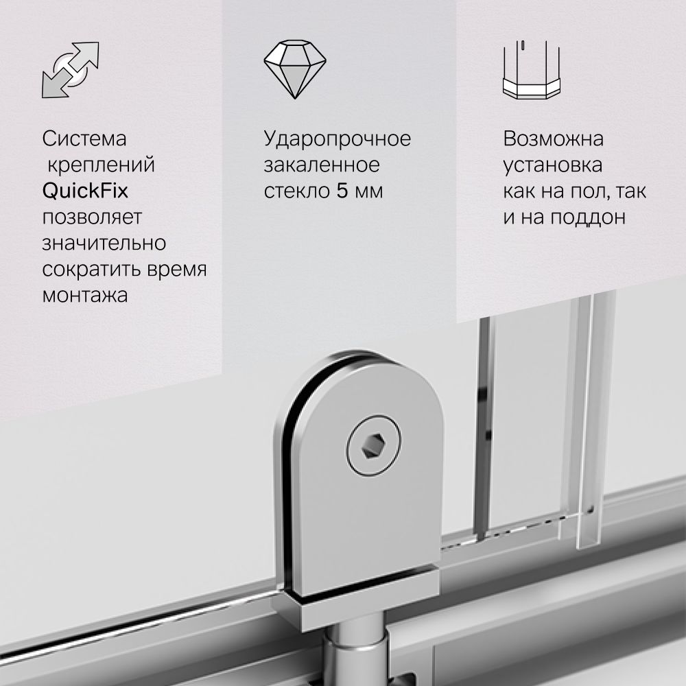 Высота 1900 мм широкая входная зона и вместительное внутреннее пространство комфортны для людей любой комплекции. В закрытом виде створки герметично блокируют мокрую зону избавляя от необходимости уборки ванной комнаты после принятия душа.