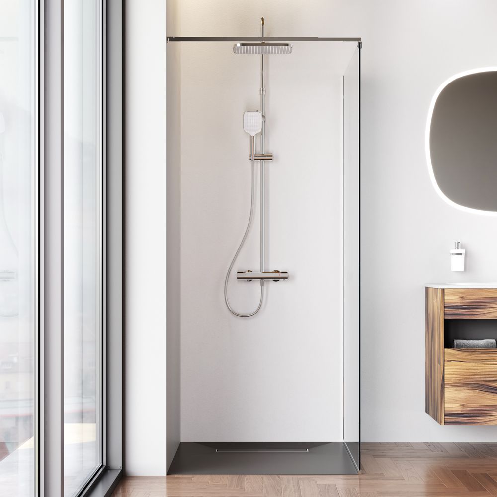 Высота 2 м регулируемый по длине кронштейн 80 - 130 см. Анодированный профиль и ударопрочное прозрачное стекло толщиной 8 мм гарантируют долгую службу. Защитное антиизвестковое покрытие EasyClean помогает легко поддерживать чистоту стекла. ""