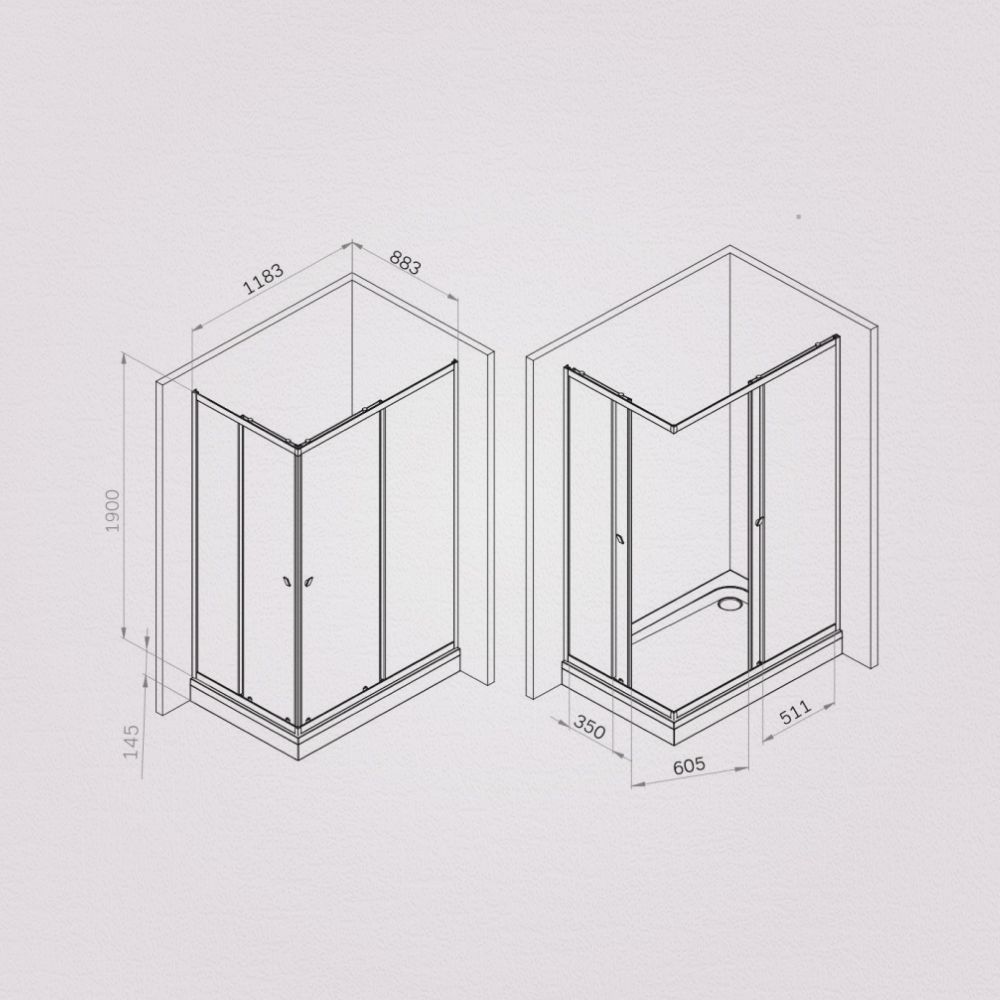 Параметры модели 120x90 сантиметров образуют прямоугольную форму. Универсальная конструкция ограждения позволяет выбрать при установке левую или правую версию монтажа и вписать ограждение в любую планировку ванной комнаты. Высота ограждения достигает 190 сантиметров. Идеальный размер для комфортного пользования. Подходит даже для самых высоких.