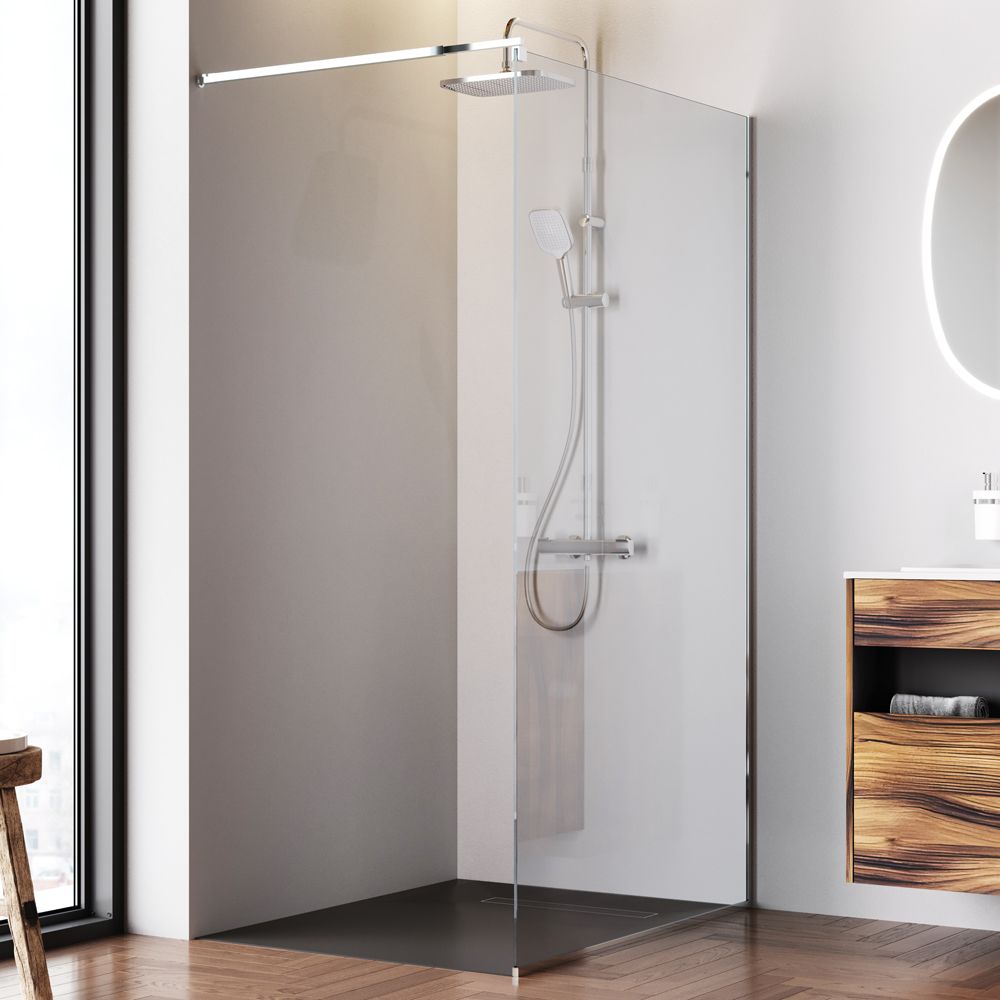 Высота 2 м регулируемый по длине кронштейн 80 - 130 см. Анодированный профиль и ударопрочное прозрачное стекло толщиной 8 мм гарантируют долгую службу. Защитное антиизвестковое покрытие EasyClean помогает легко поддерживать чистоту стекла. ""