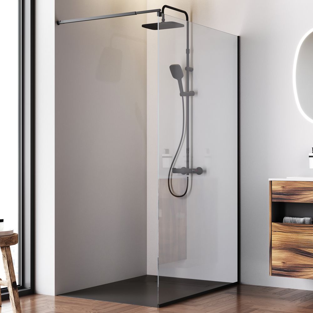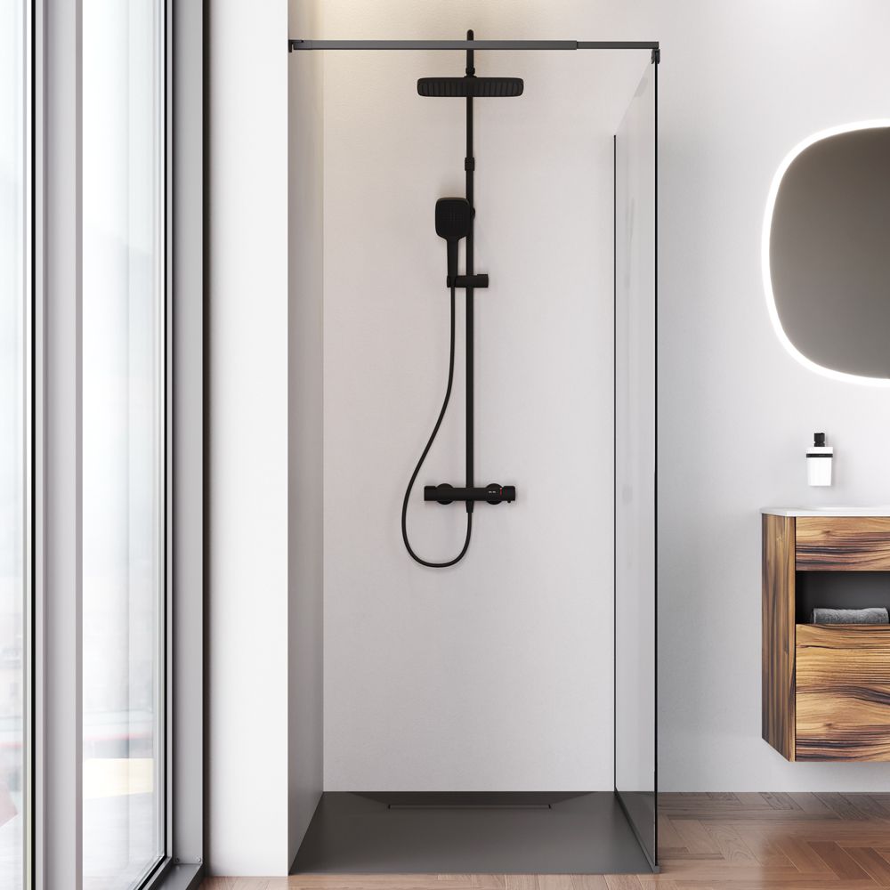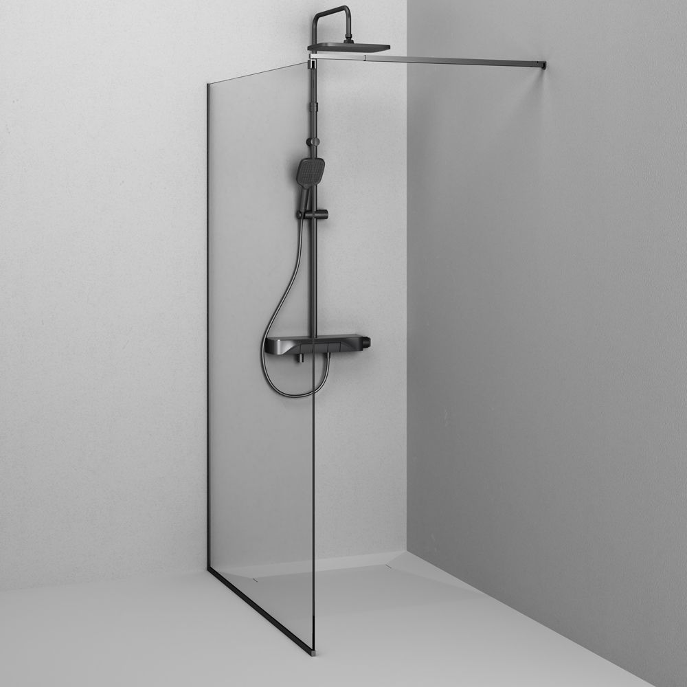 Высота 2 м регулируемый по длине кронштейн 80 - 130 см. Анодированный профиль и ударопрочное прозрачное стекло толщиной 8 мм гарантируют долгую службу. Защитное антиизвестковое покрытие EasyClean помогает легко поддерживать чистоту стекла. ""