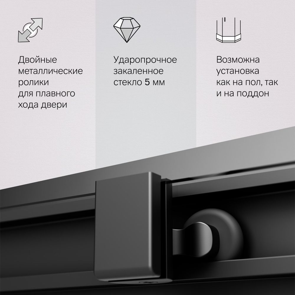 Премиальное качество: анодированные профили из алюминия двойные металлические ролики и ручки стекло 5 мм предустановочные профили в комплекте позволяет компенсировать неровности стен до 15 мм.