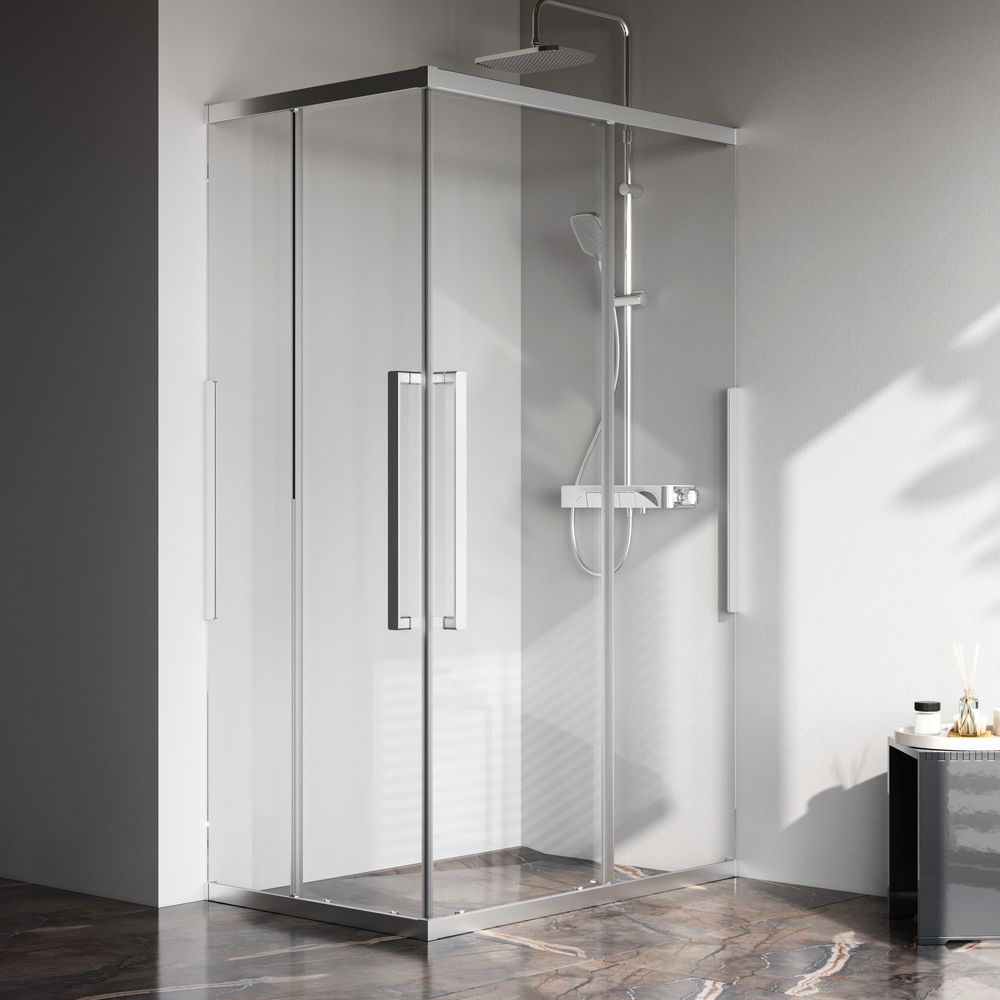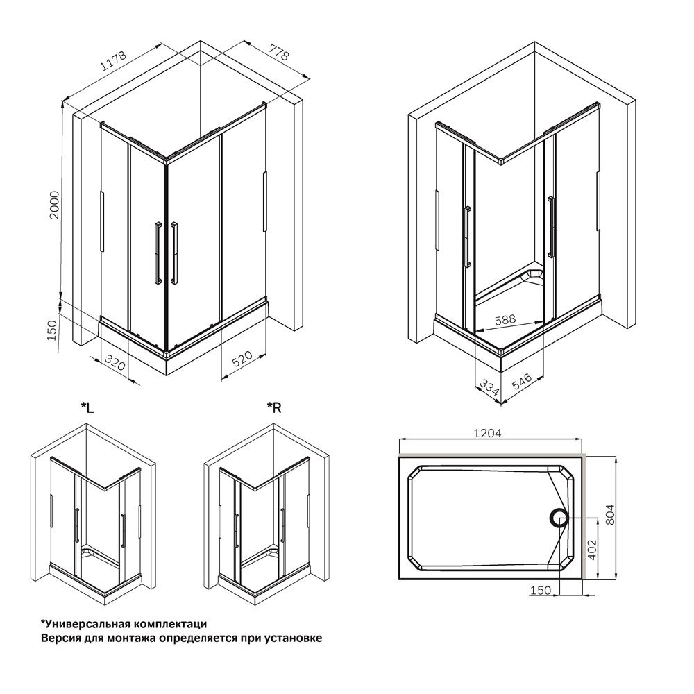 Премиальное качество: анодированные профили из алюминия двойные металлические ролики и ручки ударопрочное закаленное стекло 6 мм стеновые кронштейны в комплекте позволяют компенсировать неровности стен до 4 мм. Высота ограждения 200 см – с заботой о высоких людях.