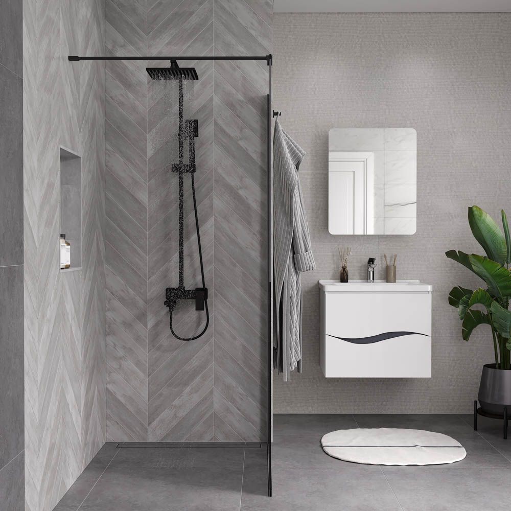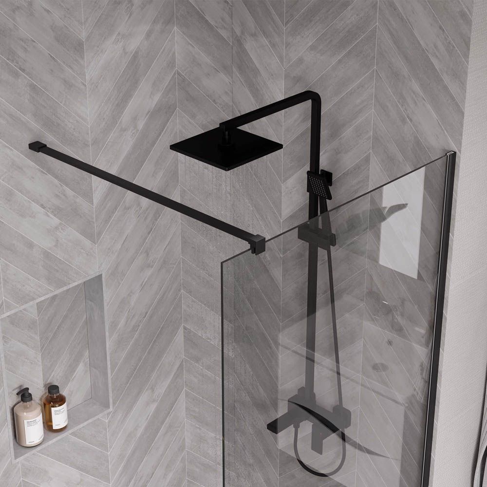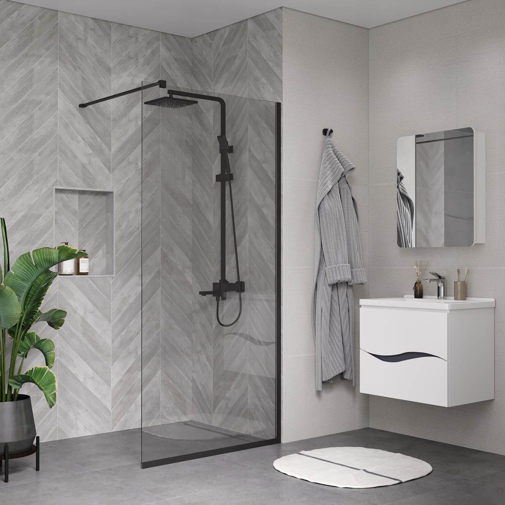 - Особенности: универсальная установка (слева/справа); закалённое стекло толщиной 8 мм; установка на поддон, бортик или пол; аннодированный алюминиевый профиль; регулировка ширины за счёт подрезания кронштейна, max длина 100 см; поворотный кронштейн, возможность крепления на любую стену