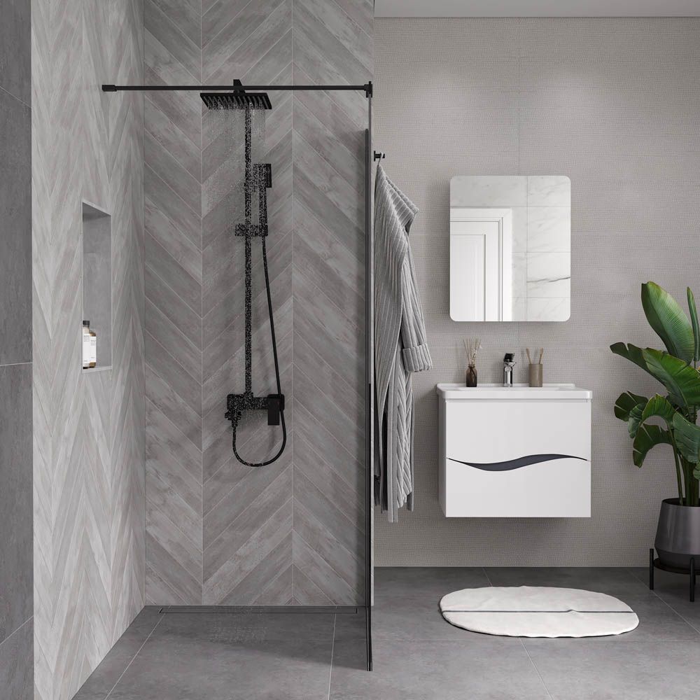 - Особенности: универсальная установка (слева/справа); закалённое стекло толщиной 8 мм; установка на поддон, бортик или пол; аннодированный алюминиевый профиль; регулировка ширины за счёт подрезания кронштейна, max длина 100 см; поворотный кронштейн, возможность крепления на любую стену