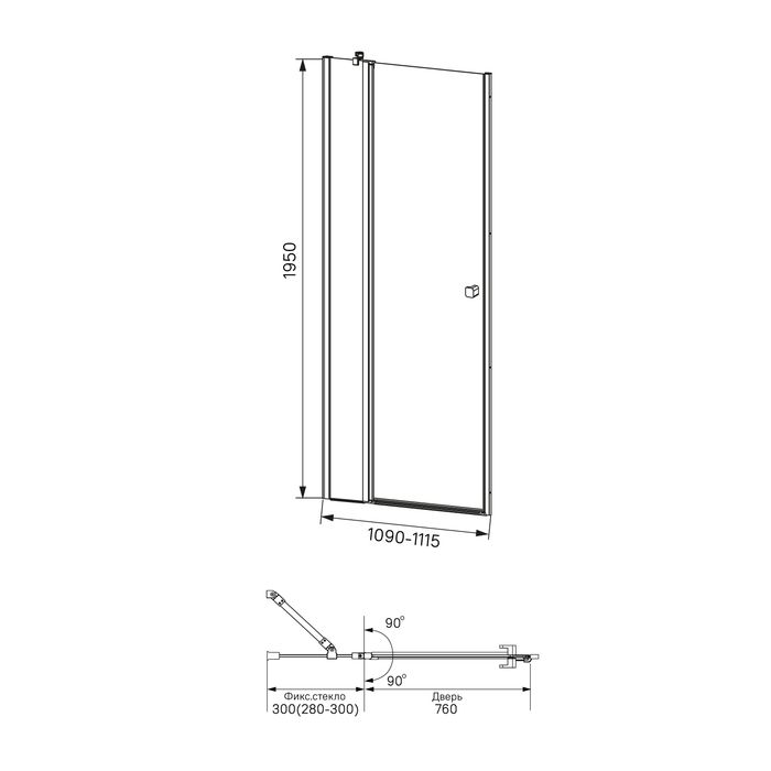 Свойства. Длина изделия, мм: 1100; Высота изделия, мм: 1950; Ширина изделия, мм: 60; Гарантийный срок: 2 года; Стиль: Модерн; Уникальные преимущества: Покрытие Easyclean; Тип конструкции: Распашные двери; Комплектация: Профили, закаленное стекло, ручка, каркас жесткости, уплотнитель, крепеж; Цвет полотна двери: Прозрачный; Материал профиля: Алюминий; Материал полотна двери: Стекло, 6 мм; Наличие функции easy clean: Да; Тип установки (расположение): В нишу; Характеристика фурнитуры дверей (петли, ролики): Шарниры; Толщина полотна двери (мм): 6; Страна производитель: Китай; Дополнительный материал: Алюминий; Тип упаковки: Картонная коробка; Конструкция дверей: Распашные.