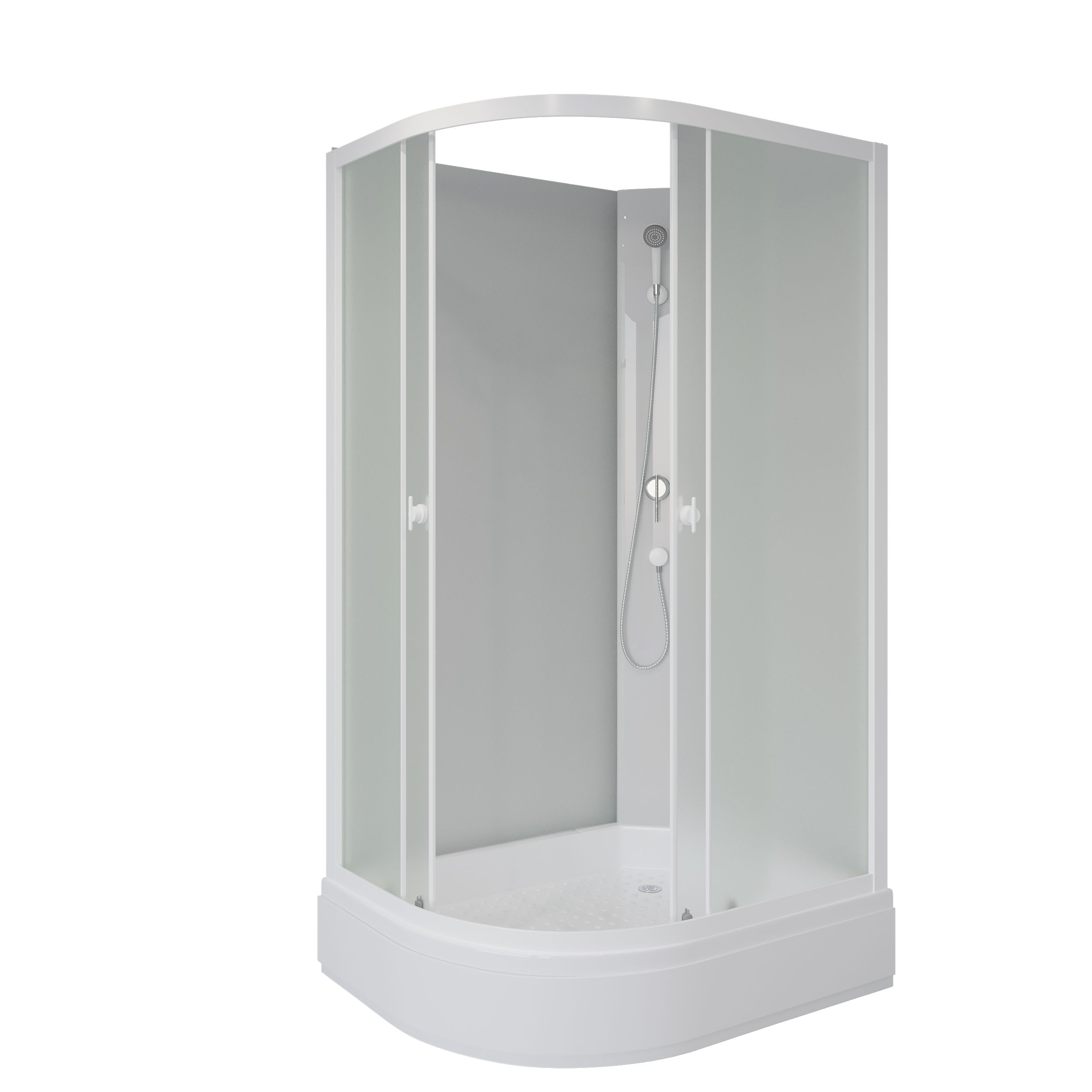 Стекла душевой кабины Promo имеют матовую поверхность. Двери раздвижные с одинарными роликами.