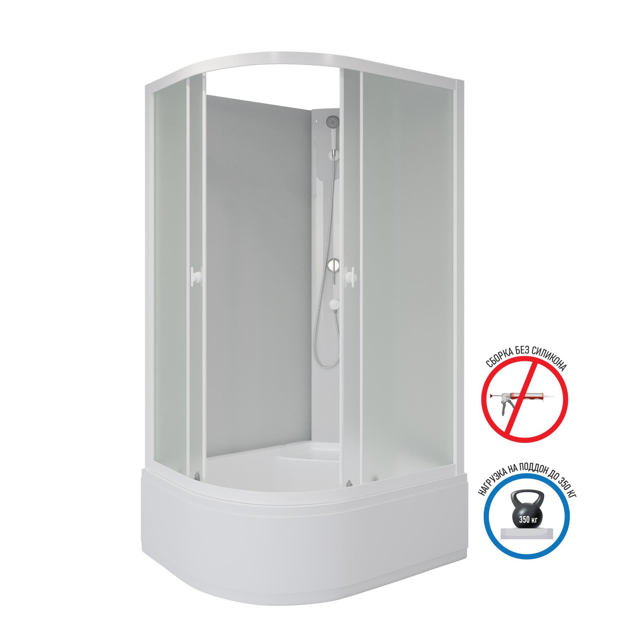 Поддон высокий 40 см, глубина 27 см.. Дно поддона усиленное и имеет антискользящее покрытие, что обеспечивает безопасность при использовании. Максимальная нагрузка на поддон составляет до 350 кг, что гарантирует его прочность и долговечность. Сборка кабины осуществляется без использования силикона, что облегчает процесс установки и обслуживания.