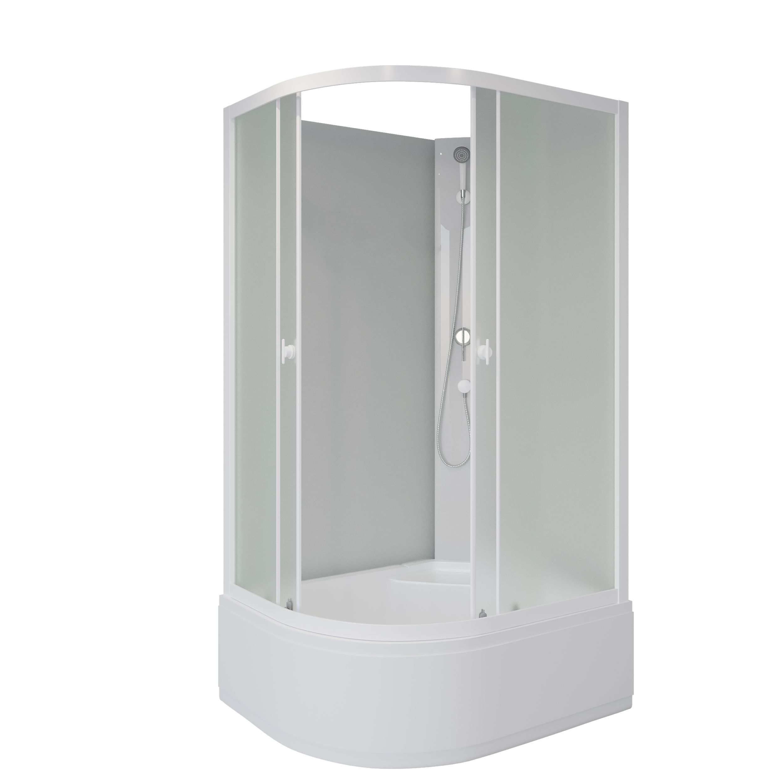 Стекла душевой кабины Promo имеют матовую поверхность. Двери раздвижные с одинарными роликами.
