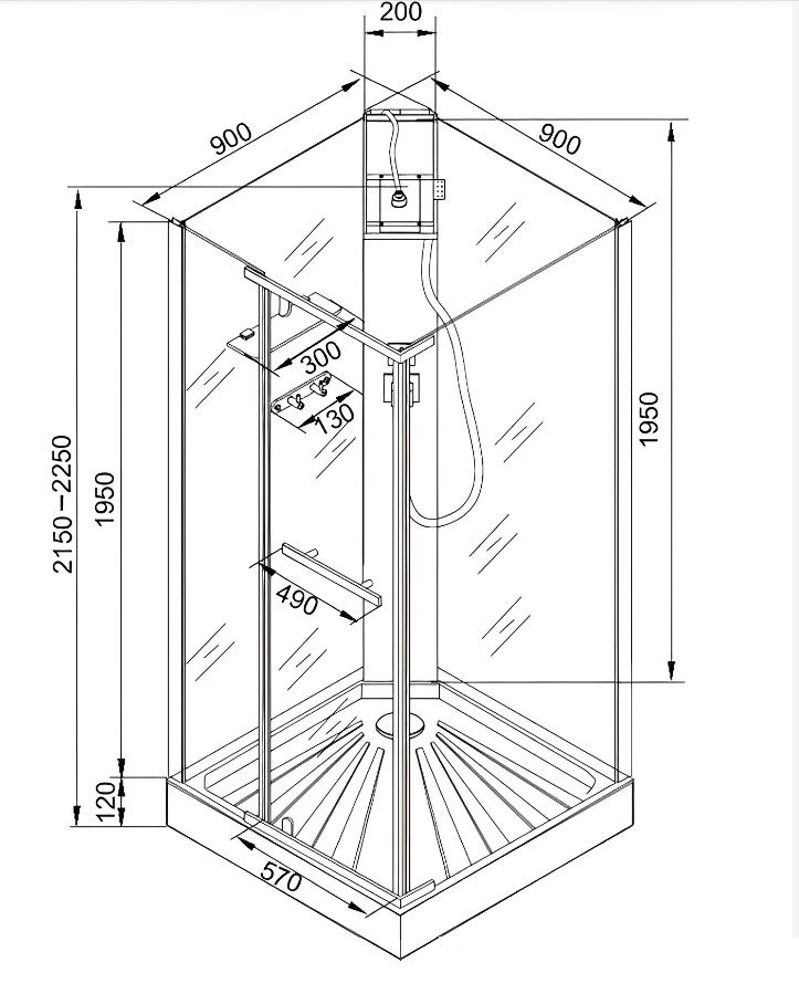 - Верхний душ - алюминиевый с регулировкой высоты 5 см + 5 см (регулируется до установки)