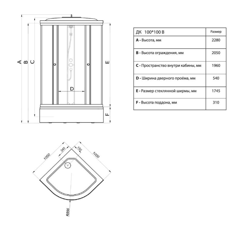 Свойства. Длина (см): 100; Ширина (см): 100; Высота (см): 228; Ширина входа (см): 54; Толщина стекла (мм): 4; Высота поддона (см): 31; Тип: душевая кабина; Форма: четверть круга; Вентиляция: есть, естественная; Гидромассаж в поддоне: нет; Производитель: Triton; Коллекция: Стандарт; Страна: Россия; Оснащение: сифон, душевой гарнитур; Бессиликоновая сборка: нет; Управление: механическое; Гарантия: 5 лет; Зеркало: нет; Освещение: нет; Сиденье: нет; Полки: нет; Вид поддона: средний; Исполнение стекол: прозрачное с узором; Количество секций двери: 2; Конструкция дверей: раздвижная; Материал задней стенки: стекло; Материал поддона: экструзионный акрил (ПММА/АБС); Материал профиля: алюминий; Наличие крыши: закрытая, с крышей; Цвет профиля: белый; Цвет задней стенки: белый; Ароматерапия: нет; Аэромассаж в поддоне: нет; Вертикальный гидромассаж: нет; Тропический (верхний) душ: есть; Озонирование: нет; Сауна: нет; Хромотерапия: нет; Турецкая баня (парогенератор): нет; Телефон (громкая связь): нет; Подключение к аудио: нет; Радио: нет.