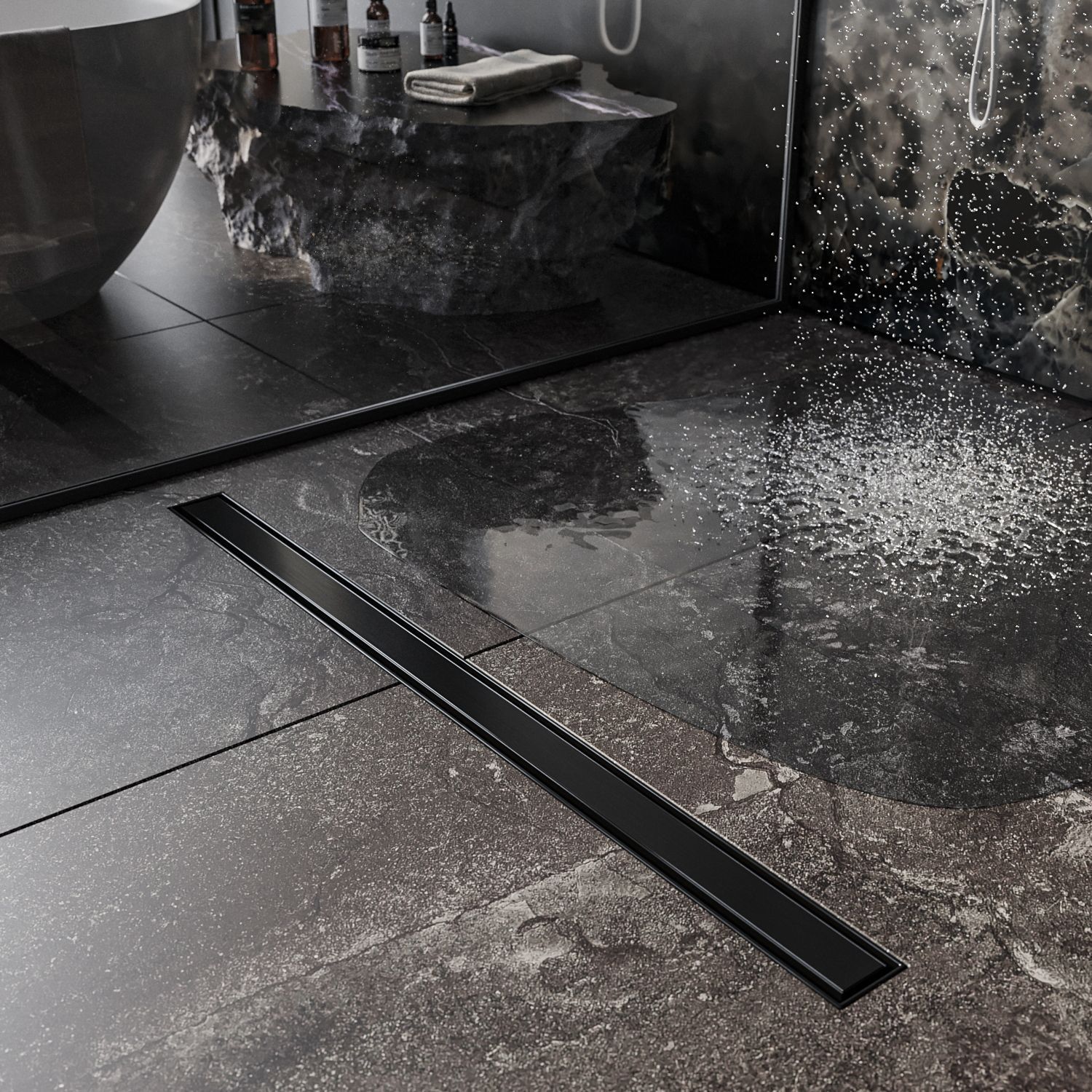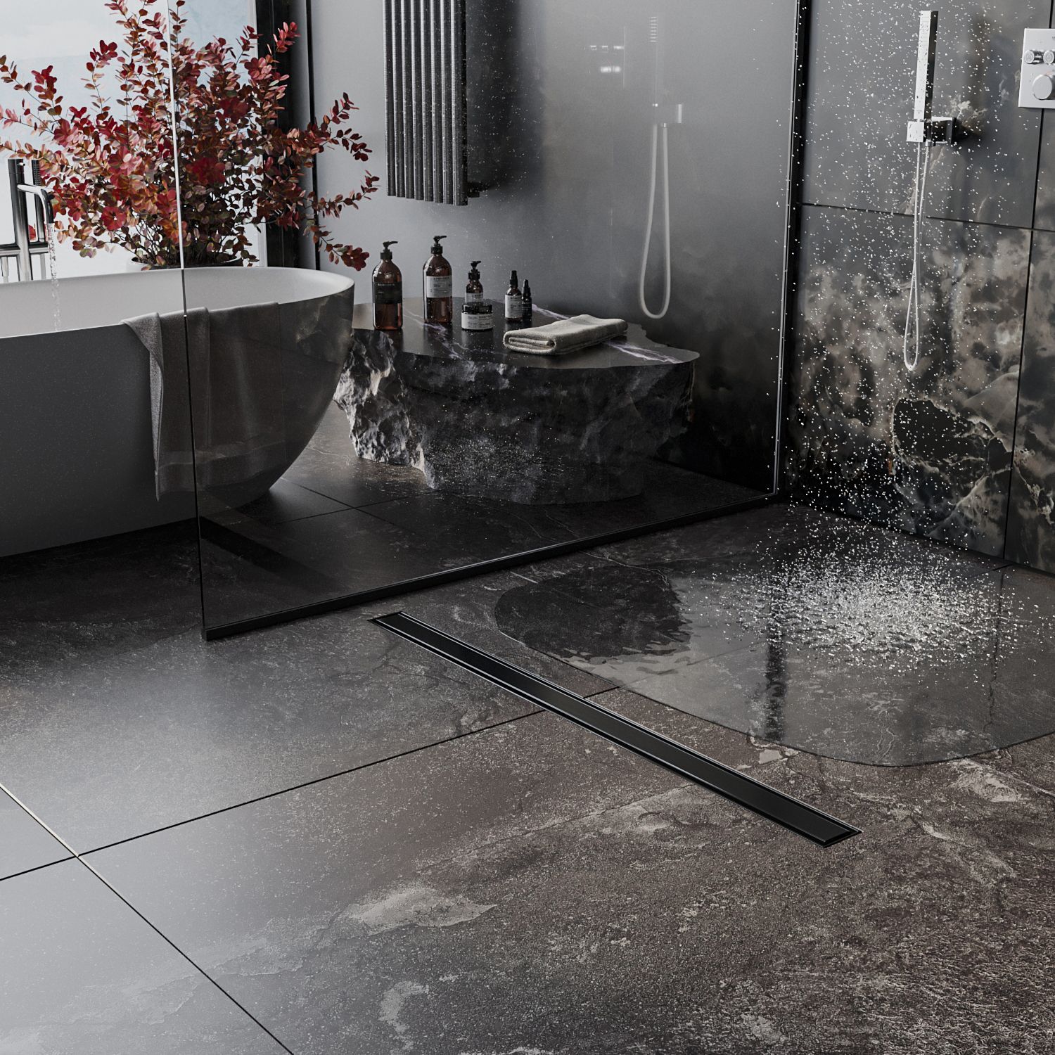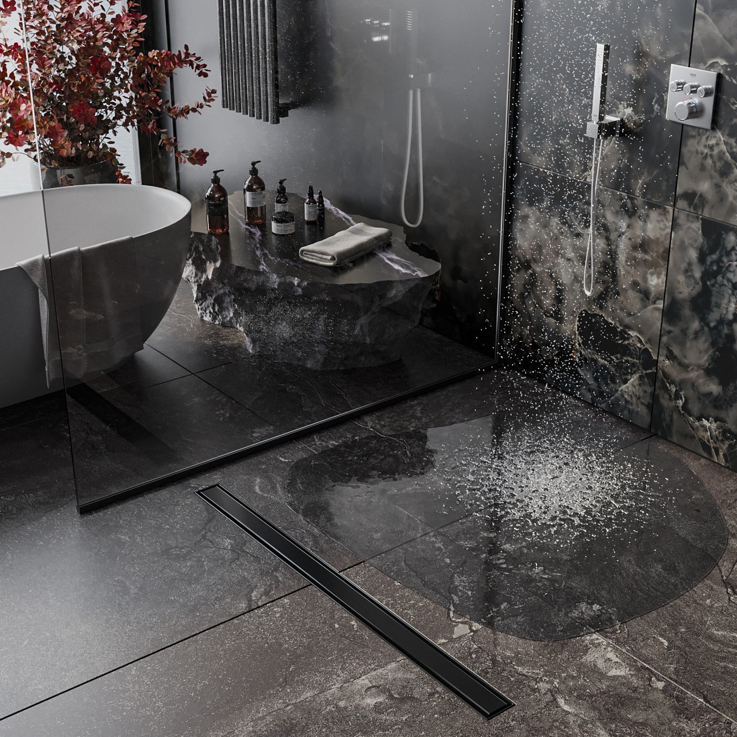 Душевой лоток Roxen Supra Black двусторонний под плитку - это практичное, стильное, современное решение для организации душевой зоны. Лоток выполнен в насыщенном черном матовом цвете, покрыт дополнительным устойчивым к химическим и механическим воздействиям покрытием, которое надежно защищает изделие от коррозии и царапин. Корпус и решетка душевого лотка изготовлены из нержавеющей стали, сифон - пластиковый, обладает высоким уровнем прочности. Оборачиваемая декоративная решетка позволяет легко изменить дизайн душевой зоны. Одна сторона решетки предназначена под укладку плитки и делает сливное устройство практически незаметным, а вторая - из нержавеющей стали с черным покрытием с повышенной устойчивостью к коррозии и царапинам.