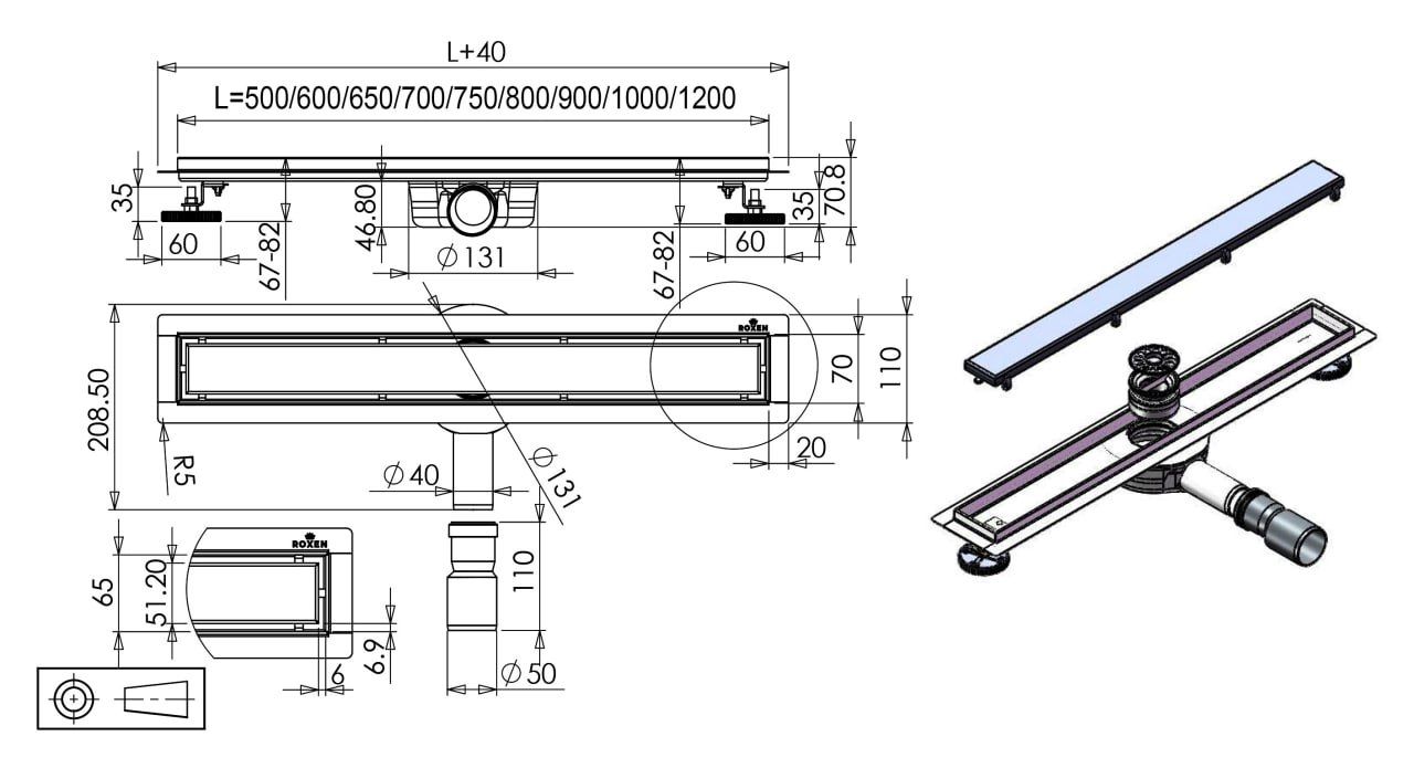 Лоток предназначен для установки вровень с полом. Регулируемые ножки позволяют нивелировать неровность пола и добиться идеальной плоскости при установке. Одна из важных особенностей данной модели - низкая монтажная глубина, что дает возможность установить лоток в любом месте.
