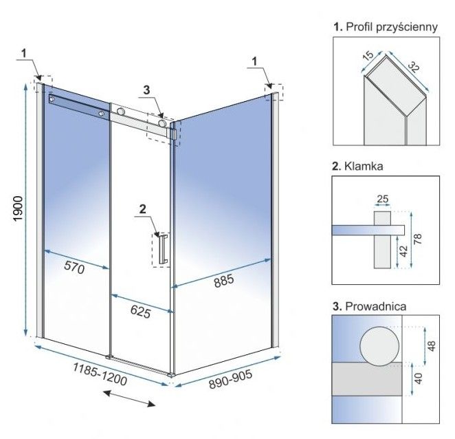 Свойства. Материал: Стекло; Наличие поддона: Без поддона; Страна-производитель товара: Польша; Тип: Душевой уголок; Форма уголка: Прямоугольная; Цвет двери/стенки: Прозрачный; Цвет профиля: Хром; Размер: 90x120.
