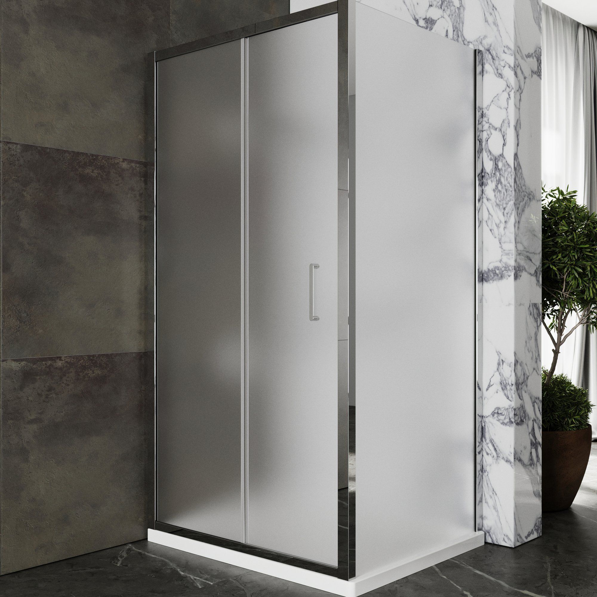 Свойства. Размеры (ДхШхВ): 100х80x195 см; Тип кабины: Душевой уголок для монтажа в угол; Тип стекла: Закалённое травмобезопасное стекло 6 мм с покрытием Easy Clean; Тип открытия дверей: Раздвижной; Цвет передних стекол: Матовый; Цвет профиля: Хром; Ориентация: Левый / правый; Широкий входной проем; Ролики: металлические, двойные, на подшипниках, с хромированными накладками; Профиль: алюминий с покрытием UltraShine; Ручки: стальные, хромированные; Силиконовые уплотнители; Комплектация поддоном: дополнительно.