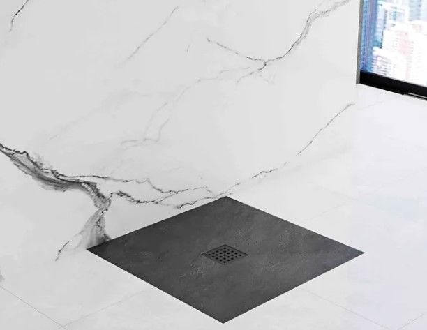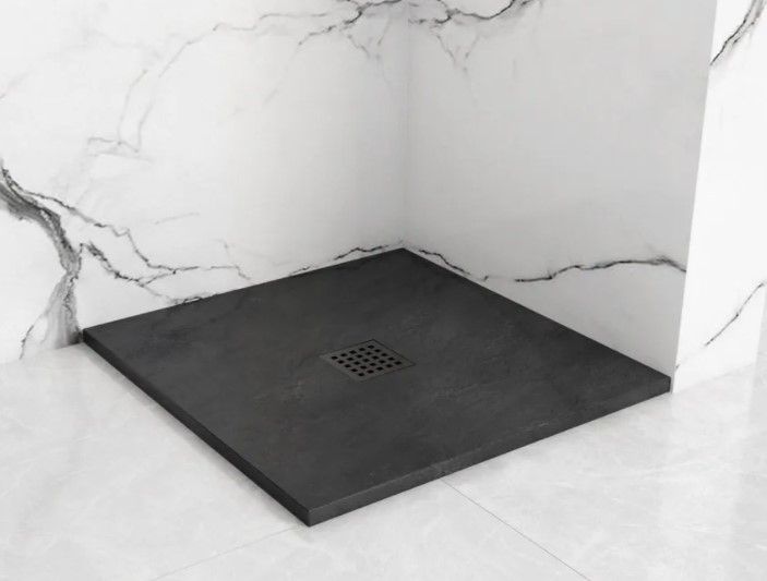 Свойства. Размеры: 900x900x35 мм; Материал: Минеральный камень, структура камня; Страна: Польша; В комплекте: сифон 90 мм, решетка слива; Гарантия: 5 лет; Цвет: чёрный; Артикул: REA-K4581.