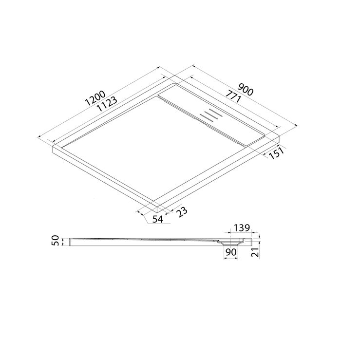 Свойства. Длина изделия, мм: 1200; Высота изделия, мм: 50; Ширина изделия, мм: 900; Гарантийный срок: 2 года; Стиль: Модерн; Уникальные преимущества: Низкий поддон с металлической съемной накладкой на слив; Сифон в комплекте: Да; Форма (конфигурация): Прямоугольная; Страна производитель: Китай; Тип упаковки: Картонная коробка.