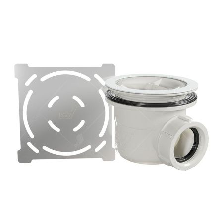 Сифон RGW S-010 для душевых поддонов с решеткой из нержавеющей стали.