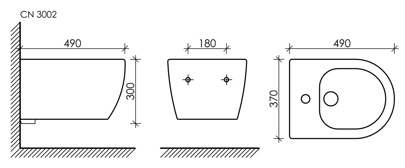 Подвесное биде Play с керамическим донным клапаном, 1 отверстие под смеситель, с крепежом для полностью скрытого монтажа. В комплекте донный клапан с керамической накладкой
