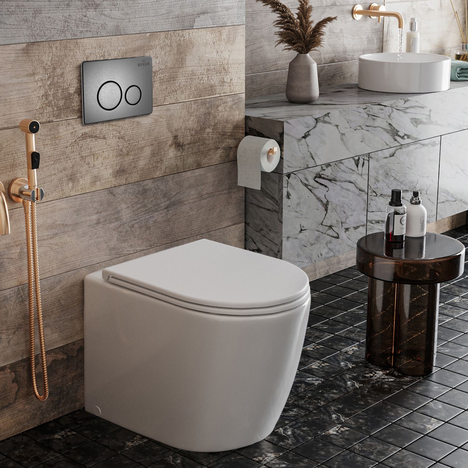 - инсталляции для приставного унитаза roxen attach 710215, - кнопка для инсталляции roxen steel 420260g. |