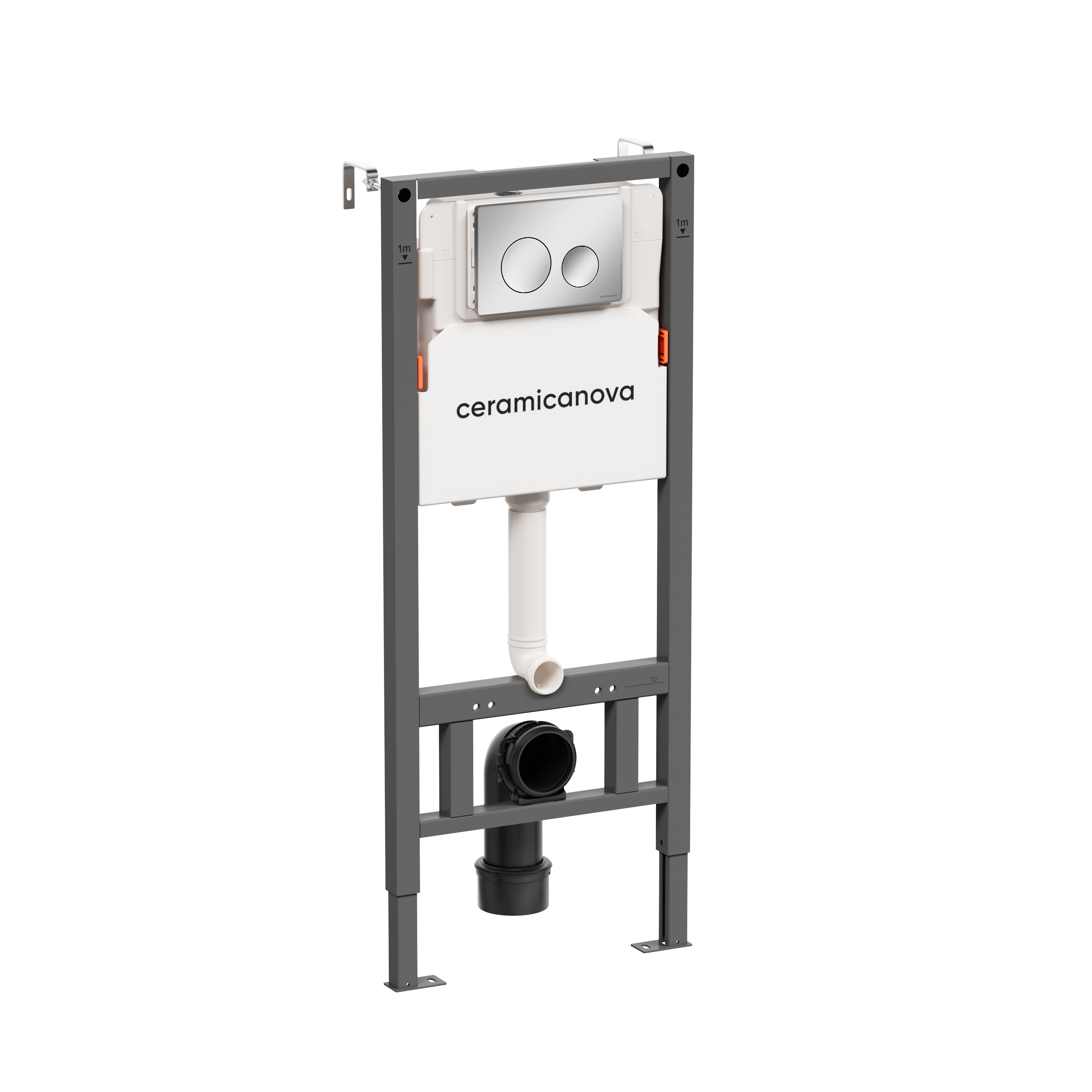Система инсталляции для унитазов CERAMICANOVA Balance с кнопкой смыва Circle, цвет хром глянцевый, и креплениями, арт. CN121001CH