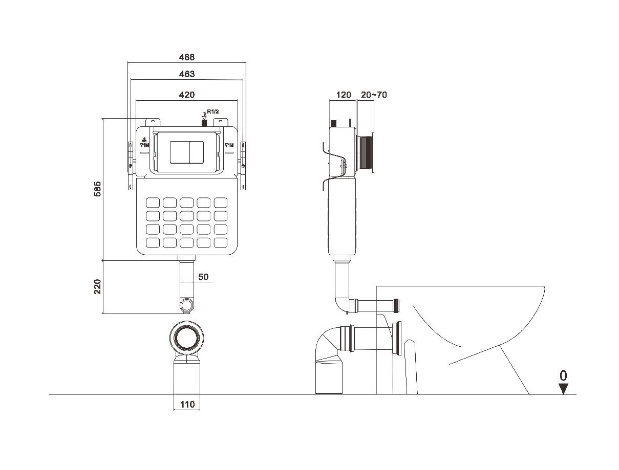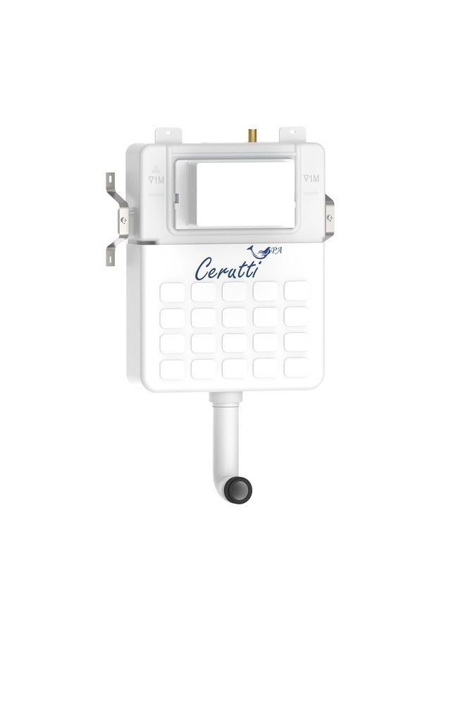 Инсталляция CR333 для приставных унитазов бренда Ceruttispa предназначена для крепления к капитальной стене/гипсокартону. Монтажная глубина составляет всего 120 мм, что позволяет устанавливать ее в ограниченном пространстве, максимально экономя свободное пространство уборной комнаты. Необходимое давление в смывном бачке для максимально мощного смывного потока воды создается объемом смывного бачка - полный объем которого составляет 10л! Оболочка из пенопласта защищает его от образования конденсата, а также создает дополнительную шумоизоляцию при наборе воды. Такой тип бачка исключает риск протечки. Механическое управление смыва обеспечивает бесперебойную работу на весь срок службы. Стоит заметить дополнительное удобство данной инсталляции в том, что сервисное обслуживание смывного бачка в случае необходимости осуществляется через окно, находящееся за кнопкой смыва.