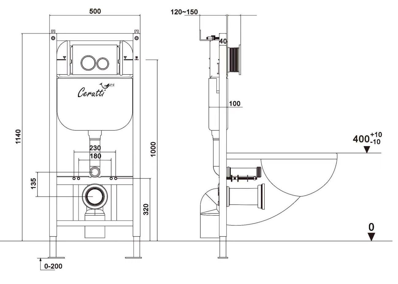 Инсталляция CR558 итальянского бренда Ceruttispa предназначена для крепления к капитальной стене и полу. (Инсталляция приобретается совместно с кодом 9910 - комплектом необходимых креплений и соединительных фитингов для подключения унитаза).