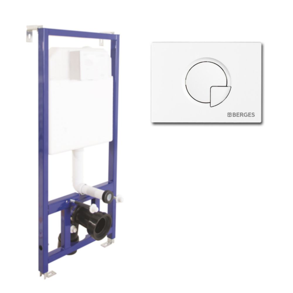 Инсталляция BERGES для скрытого монтажа унитаза NOVUM кнопка R1 белая
