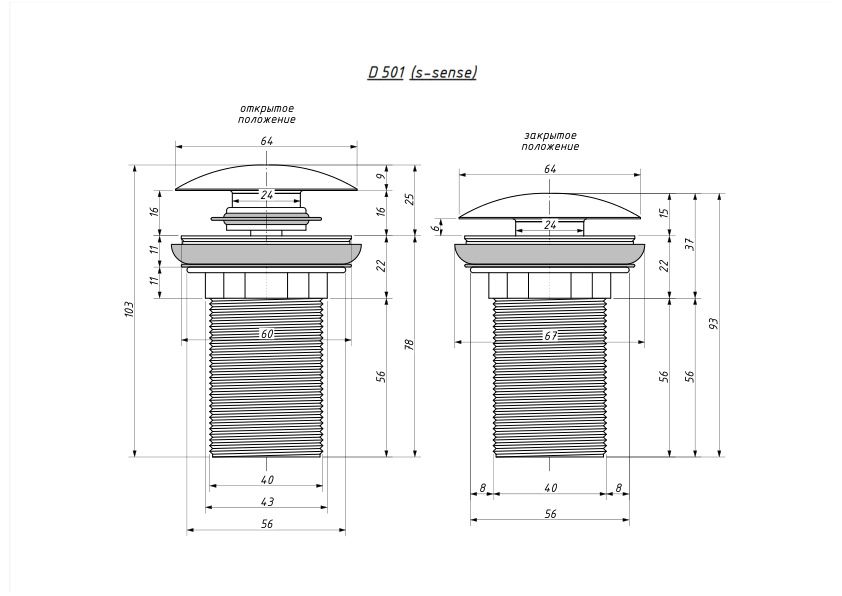 - Вид: Донный клапан для раковины D 501