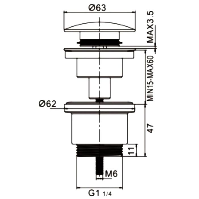 Свойства. Тип: Донный клапан; Материал: Латунь; Страна-изготовитель: Китай; Цвет: Хром; Гарантия: 5 лет; Покрытие: Глянцевое; Диаметр слива, мм: 63; Сливной диаметр: 1 1/4"; Длина, мм: 63; Вид сифона: Бутылочный; Назначение сифона: Для умывальника.