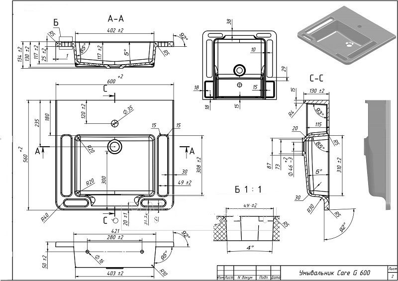 Тип: умывальник;