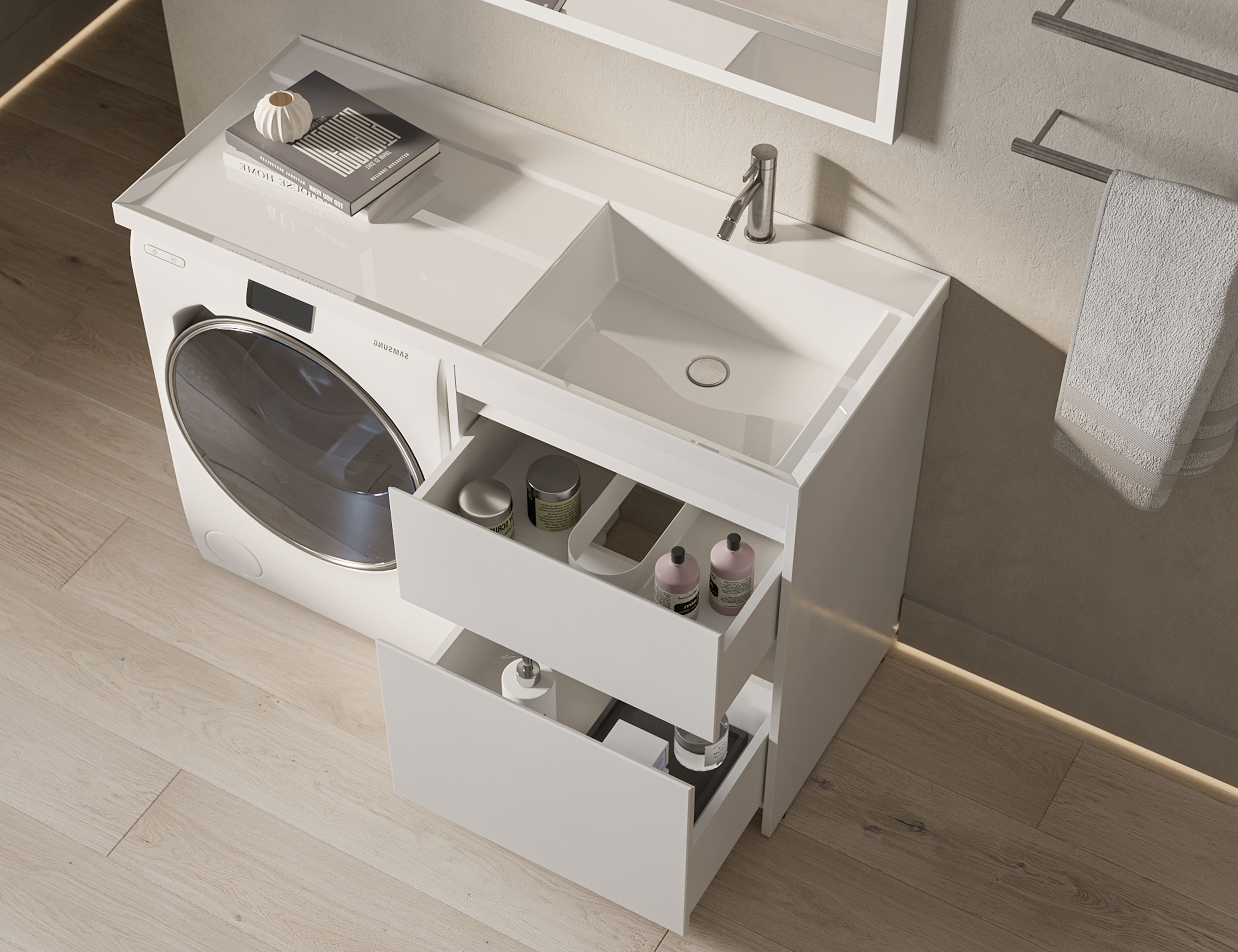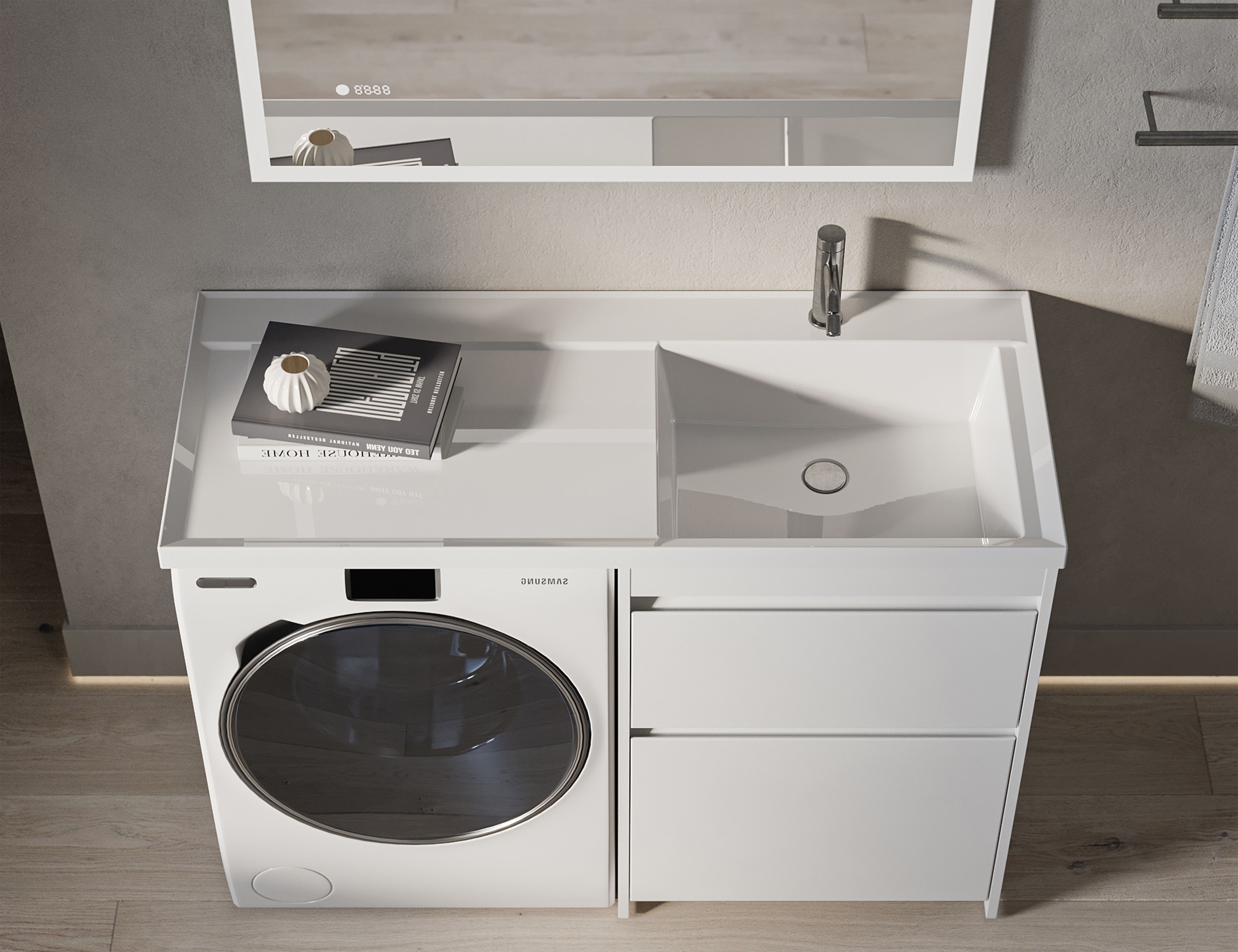 Конструкция: умывальник над стиральной машиной, раковина-столешница;