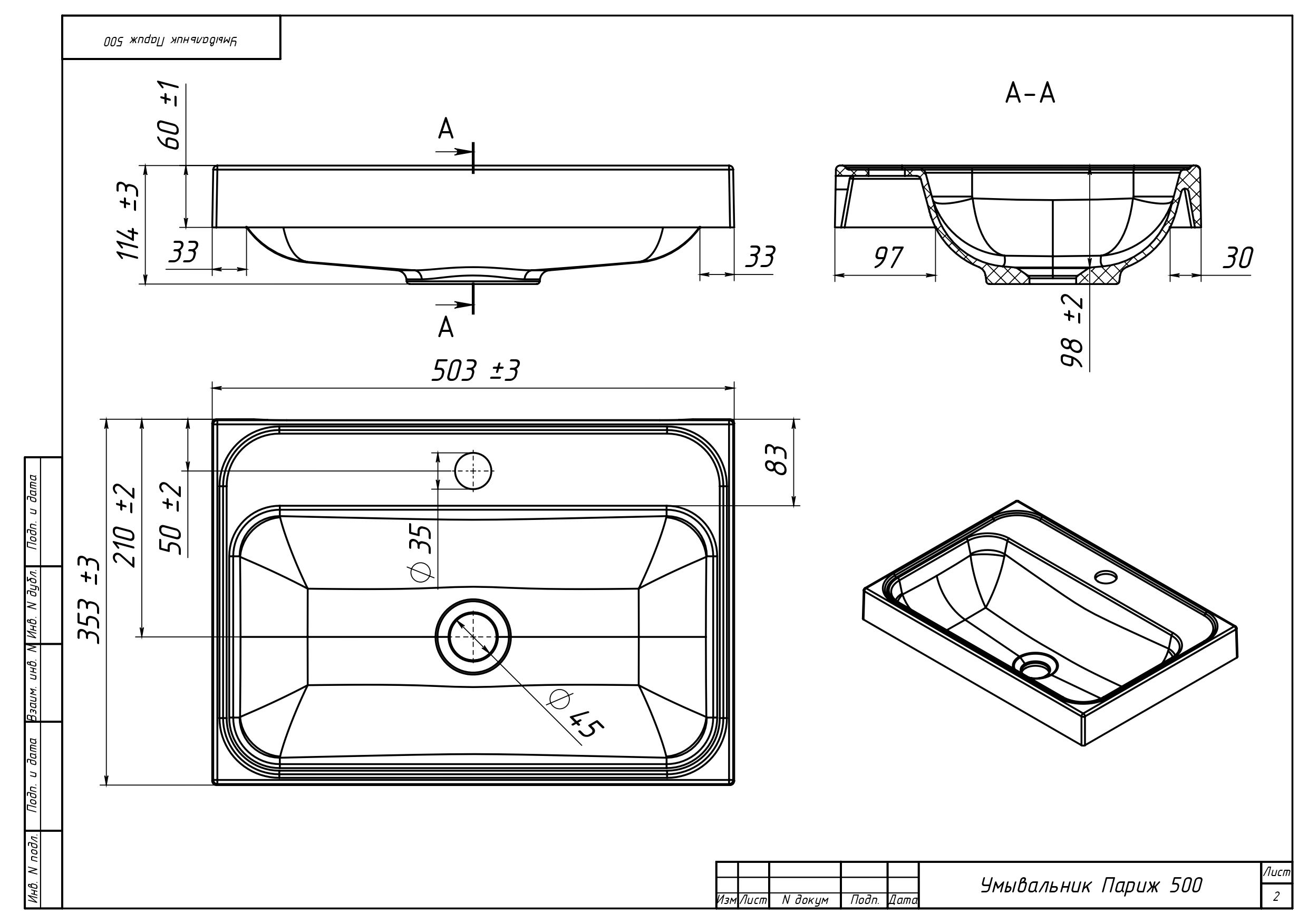 Расположение отверстия под смеситель: по центру;