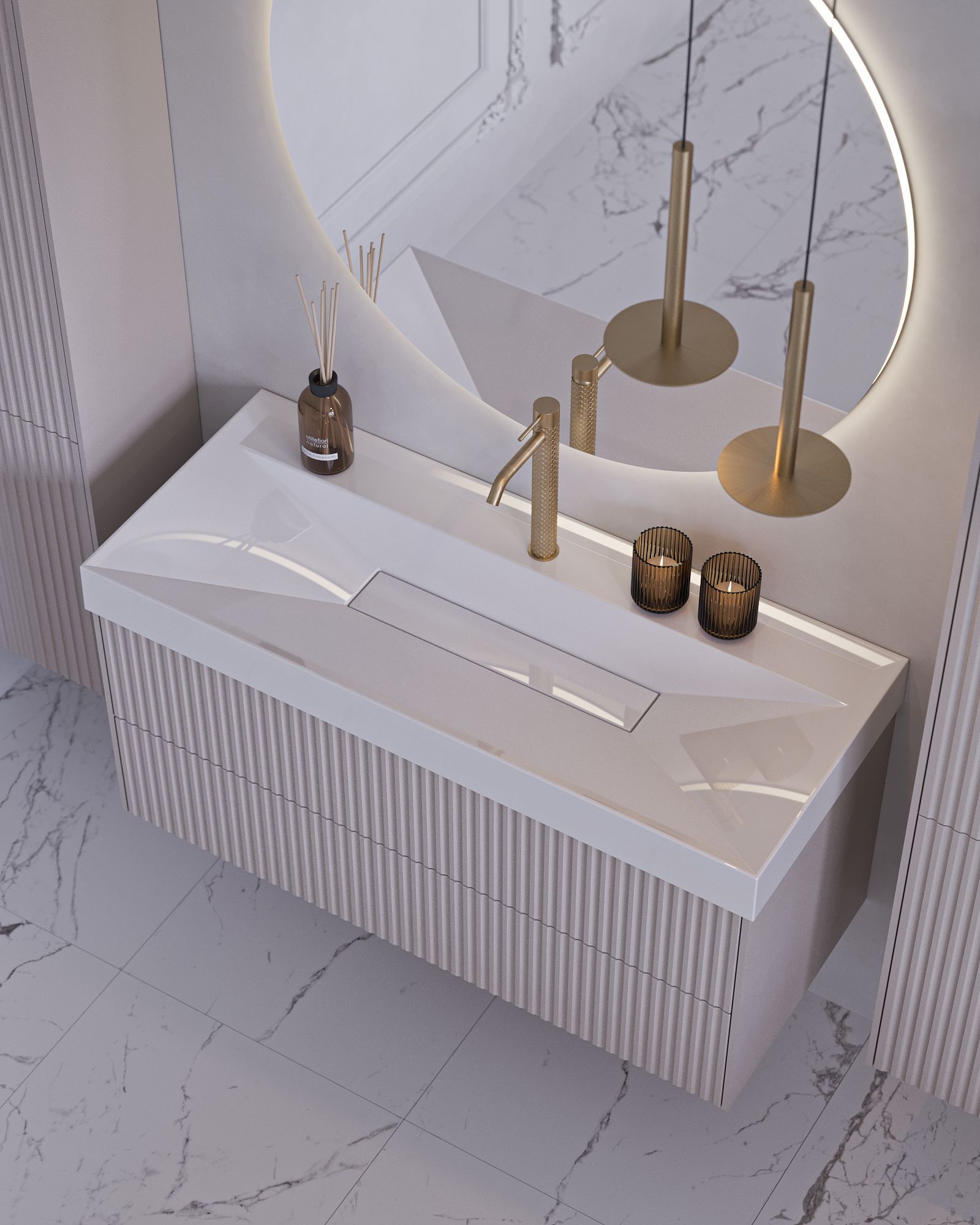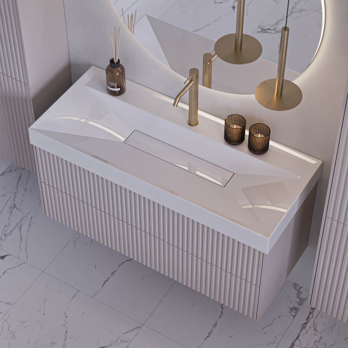Форма декоративной накладки на слив: прямоугольная (искусственный мрамор);