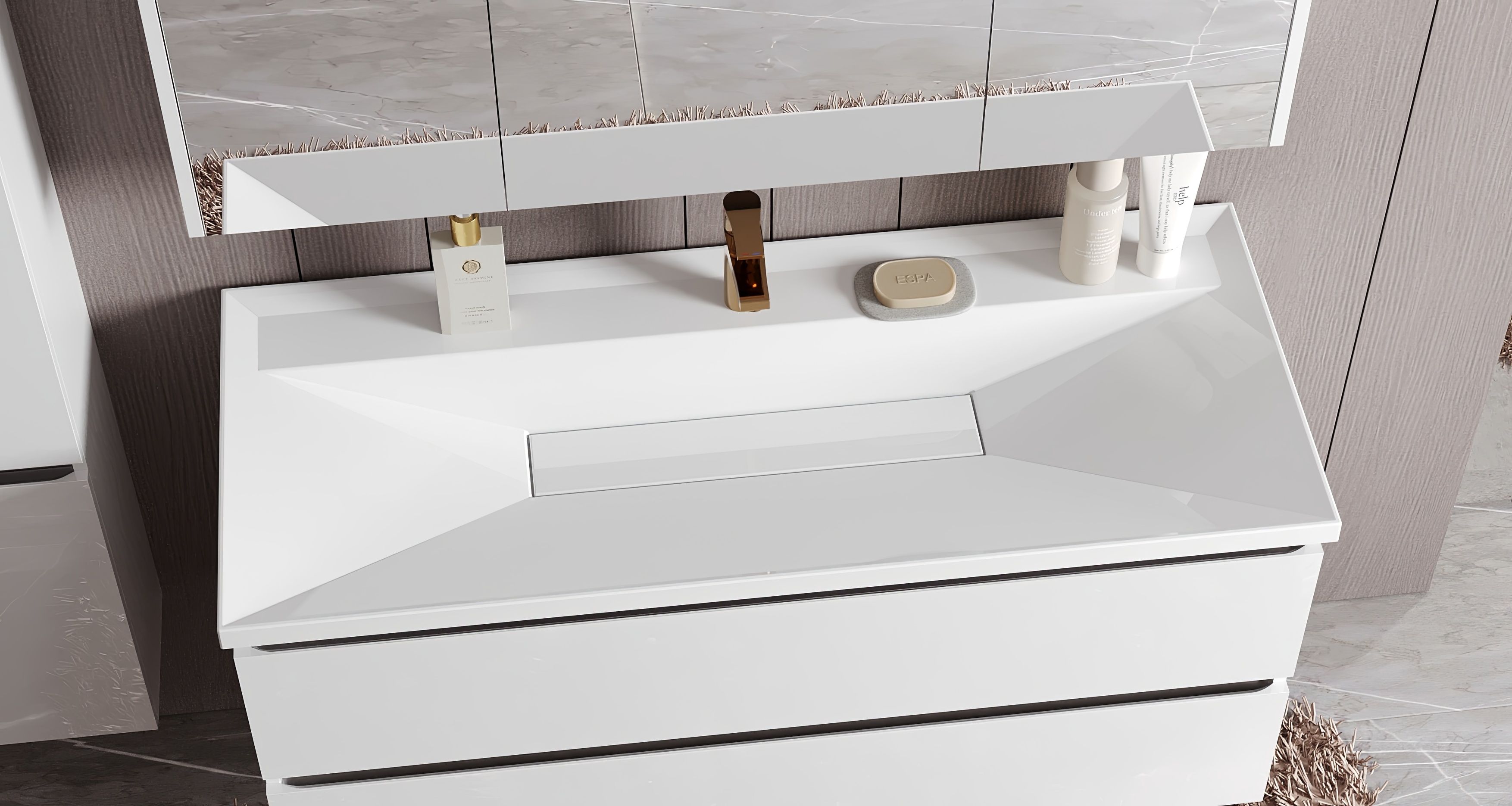 Форма декоративной накладки на слив: прямоугольная (искусственный мрамор);