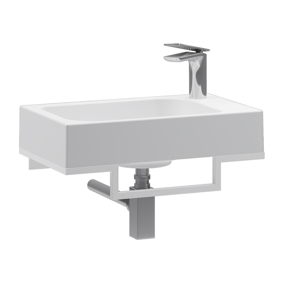Набор комплектуется умывальником, сифоном, выпуском, крепежом и функциональным металлическим каркасом с полотенцедержателем, что одновременно функционально и не требует дополнительных затрат на аксессуары.