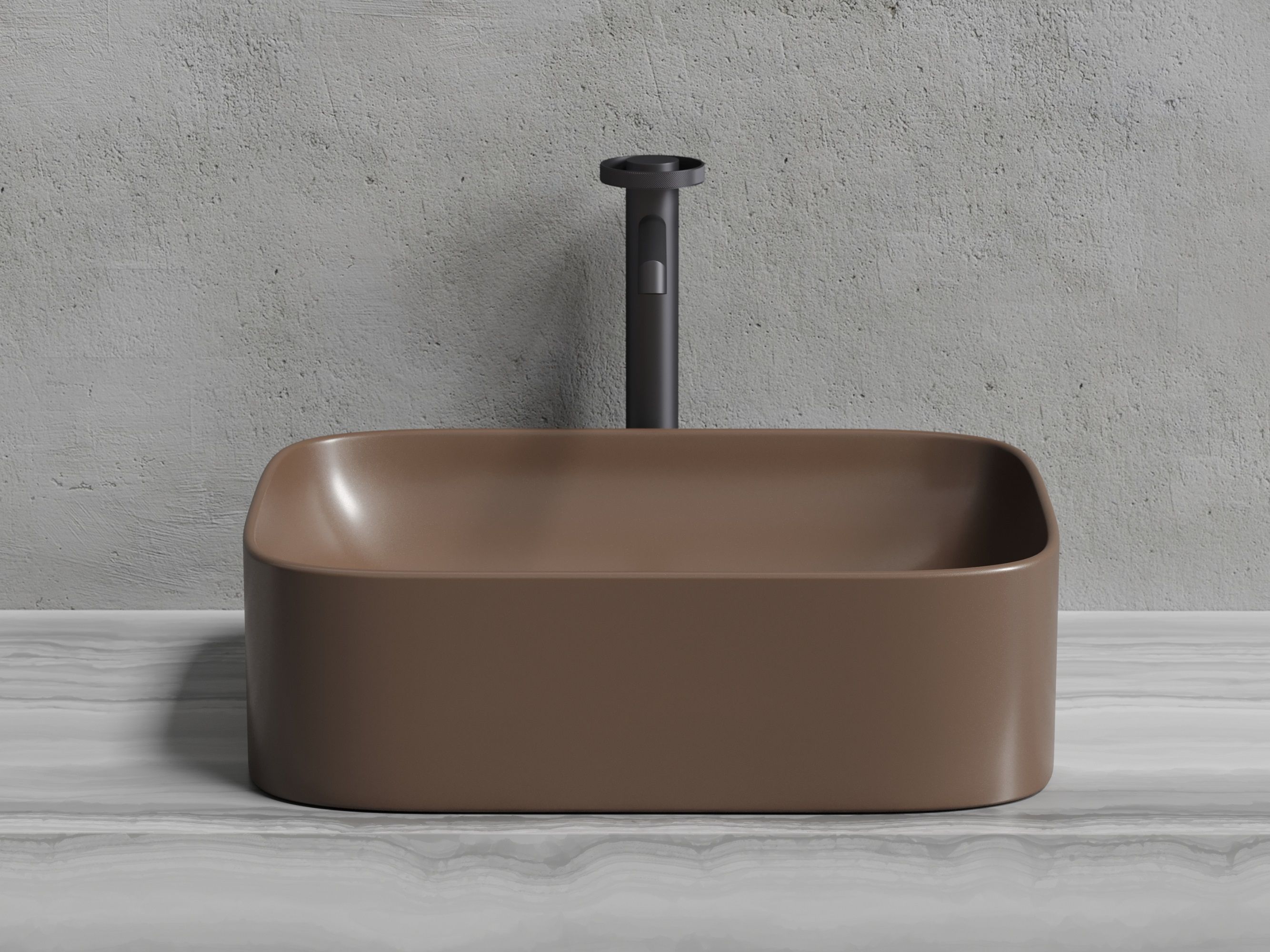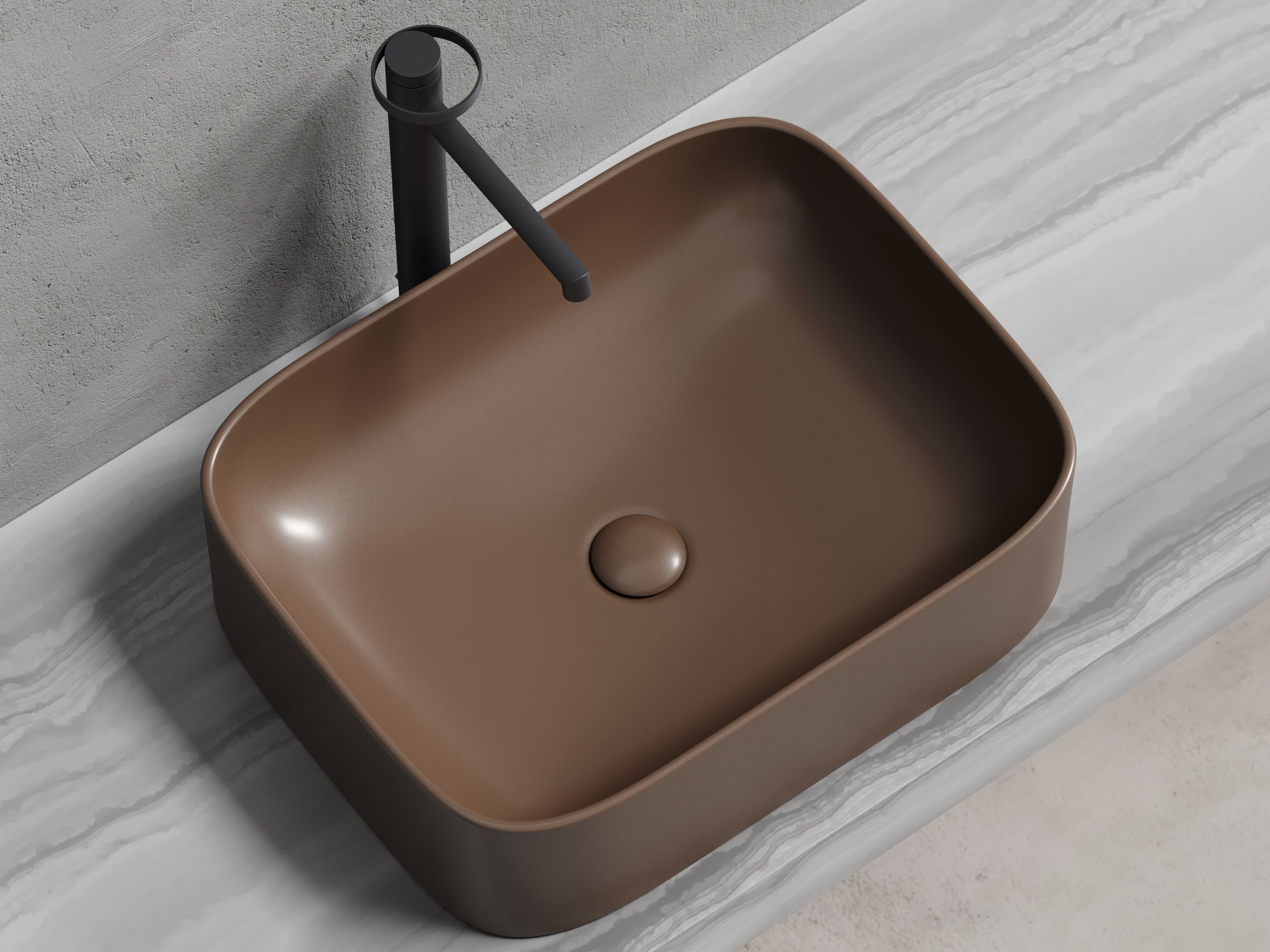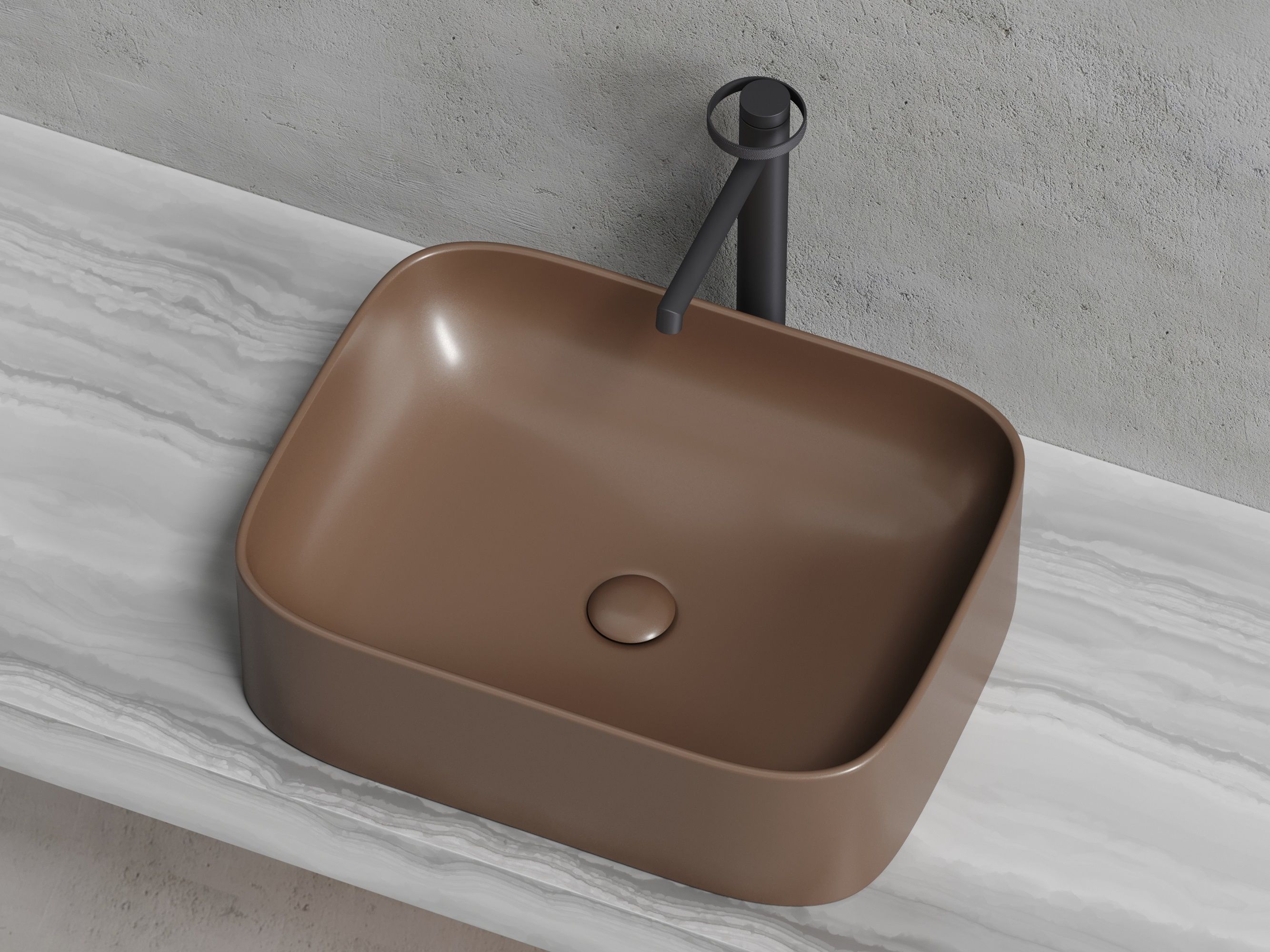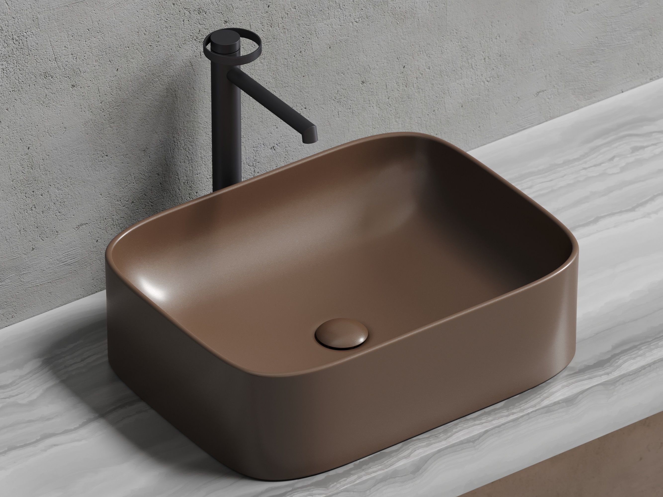- Особенности раковины: дизайнерская коричневая матовая