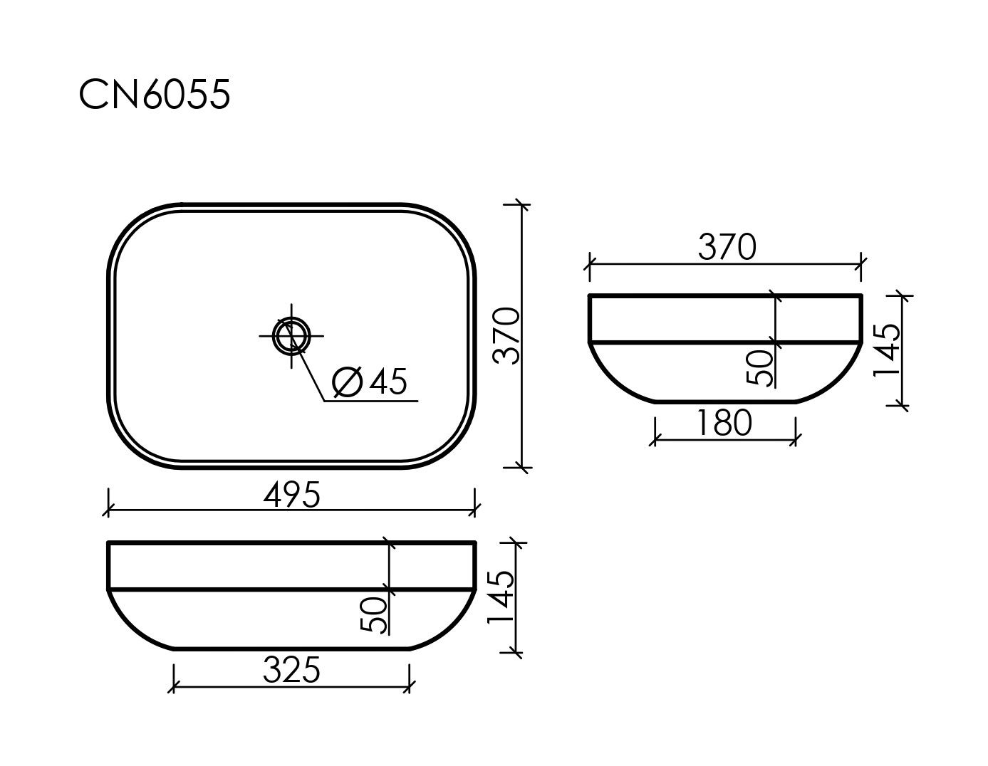 Умывальник чаша накладная прямоугольная Element 500*359*145мм