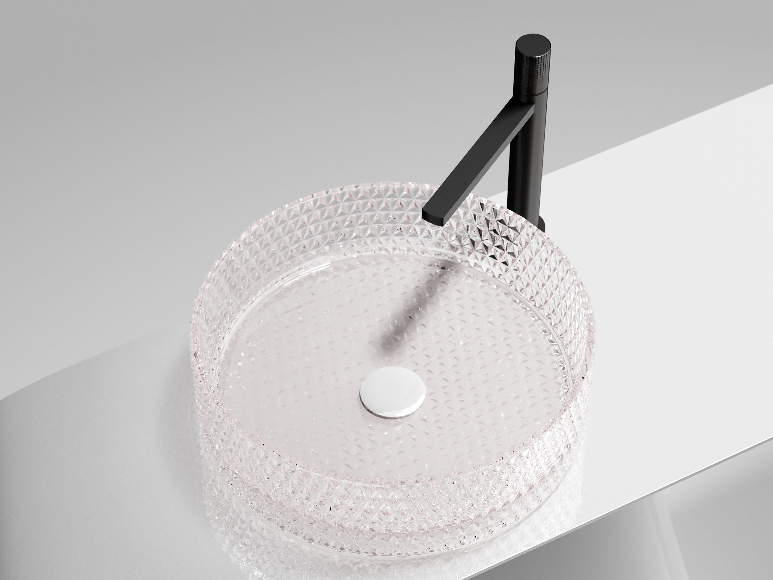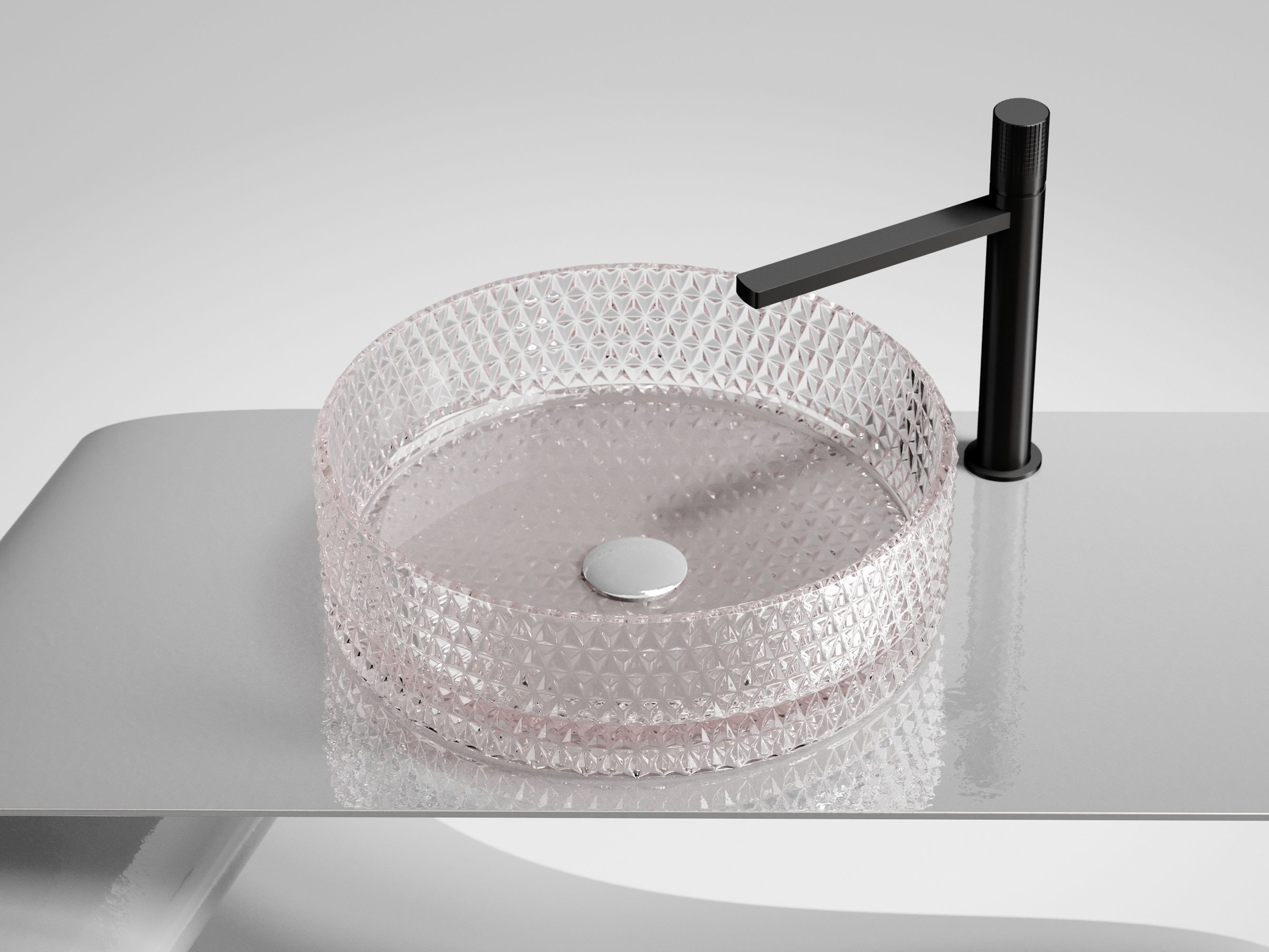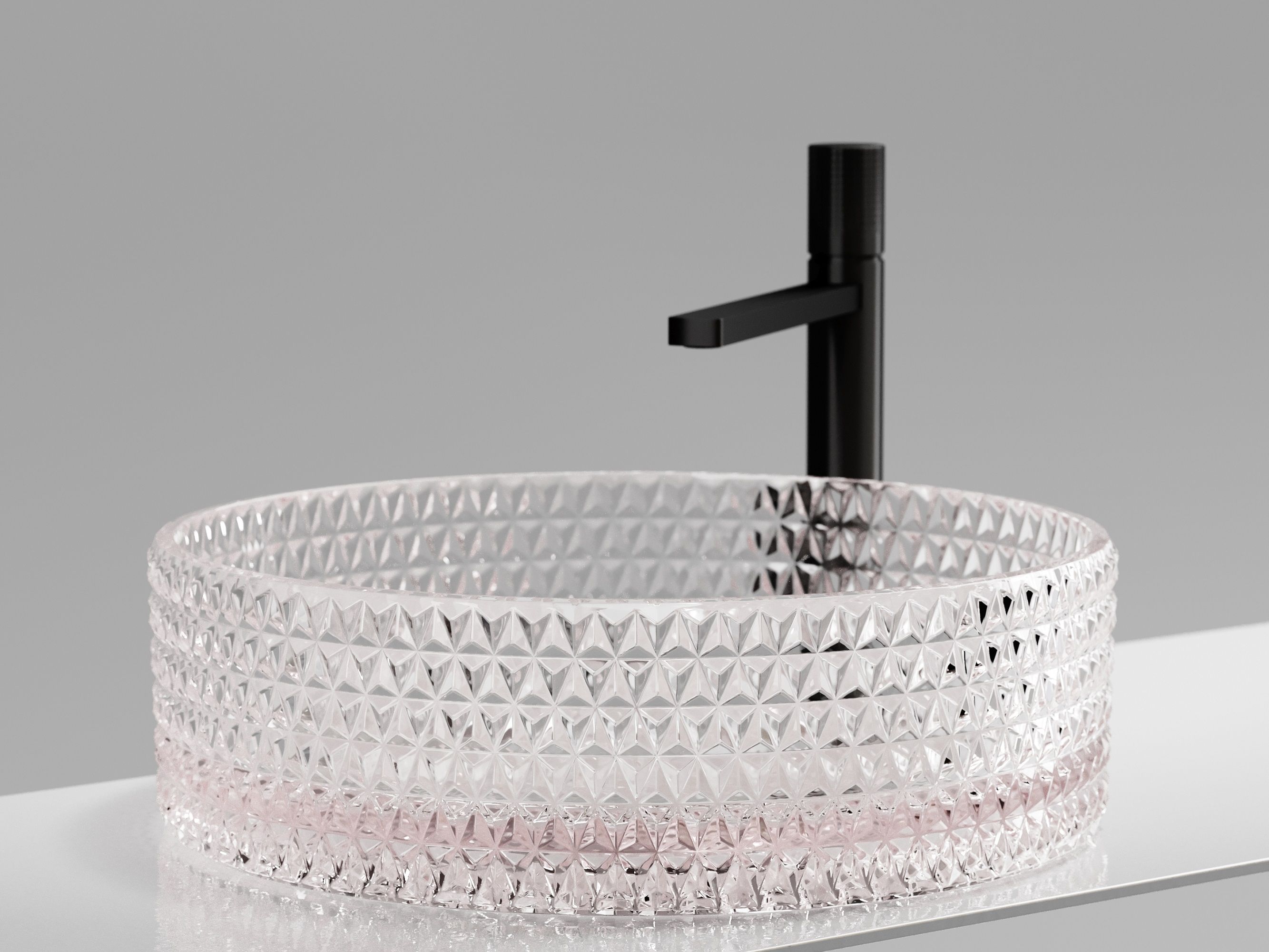 Умывальник чаша накладная круглая (цвет розовый) Cristal 360*360*112мм