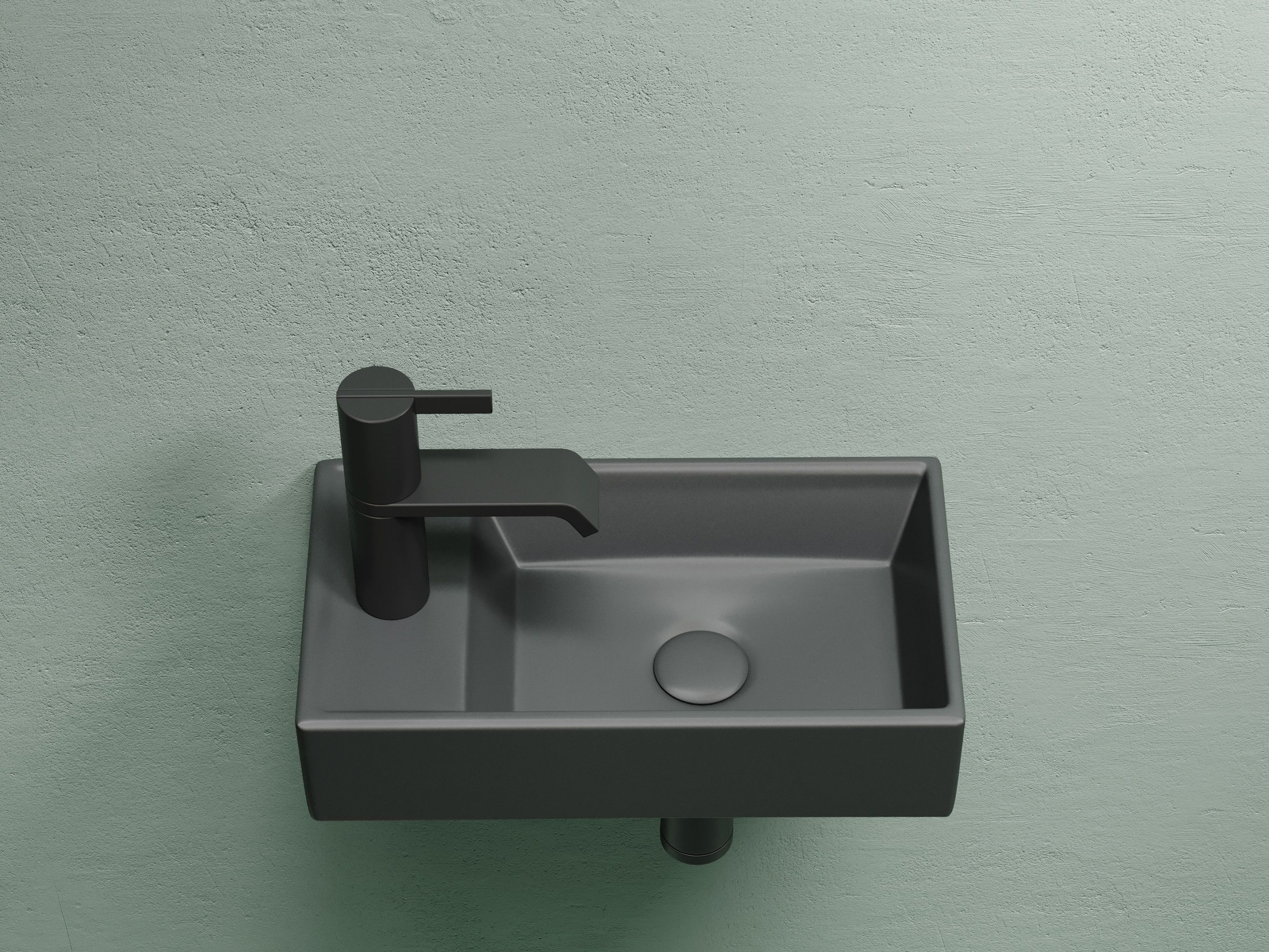 Умывальник подвесной прямоугольный (чаша справа, отверстие под смеситель слева) цвет темный антрацит матовый Element 407*217*100