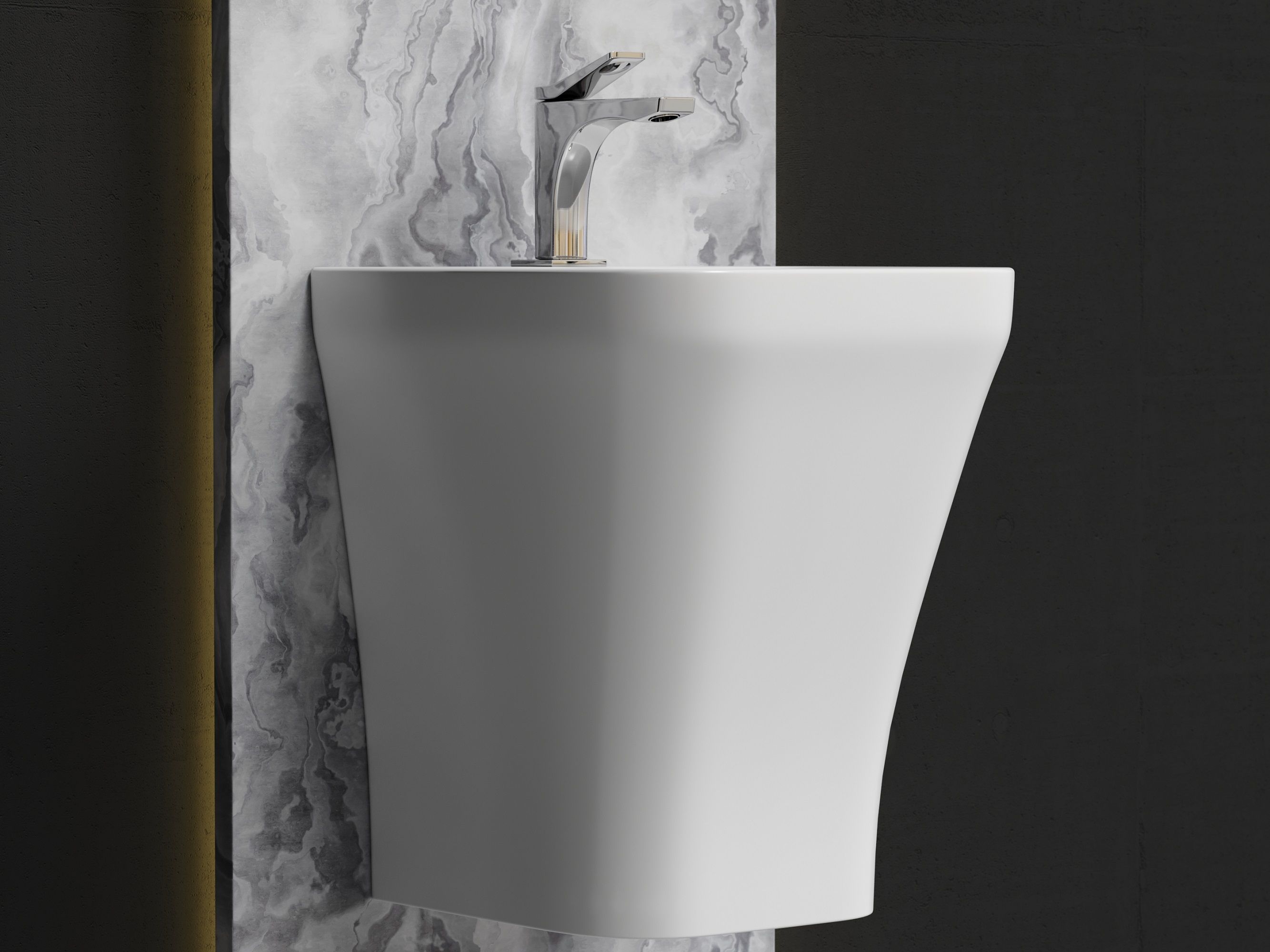 Раковина моноблок подвесная DION с отверстием под смеситель, со сливом переливом