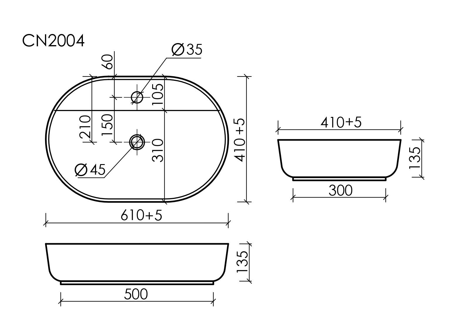 Умывальник накладной MODO 610*450*135мм, с плоскостью под смеситель